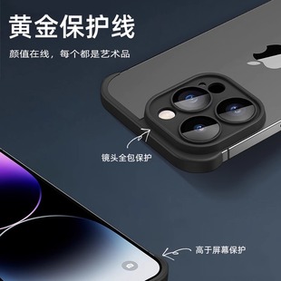 适用苹果14pro手机壳新款 iphone15promax镜头全包16硅胶保护套17超薄防摔plus高级感男女网红裸机手感四角垫