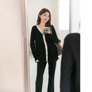 撞色V领气质针织衫 小香风 春秋装 洋气孕妇装 外套遮肚显瘦上衣 时尚