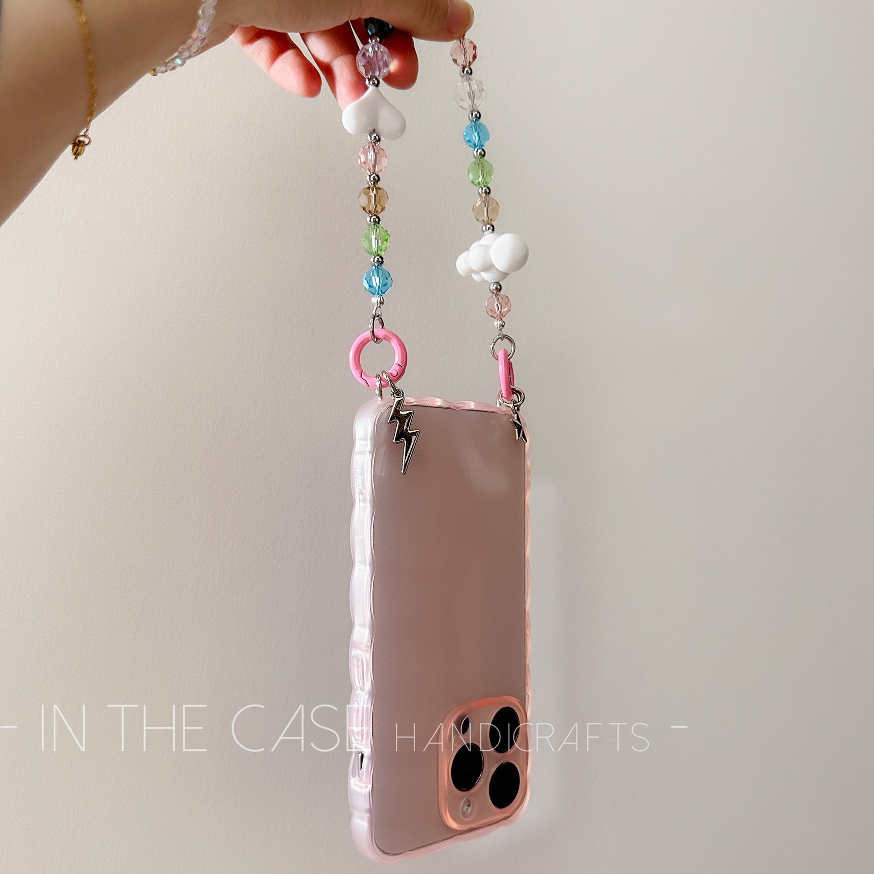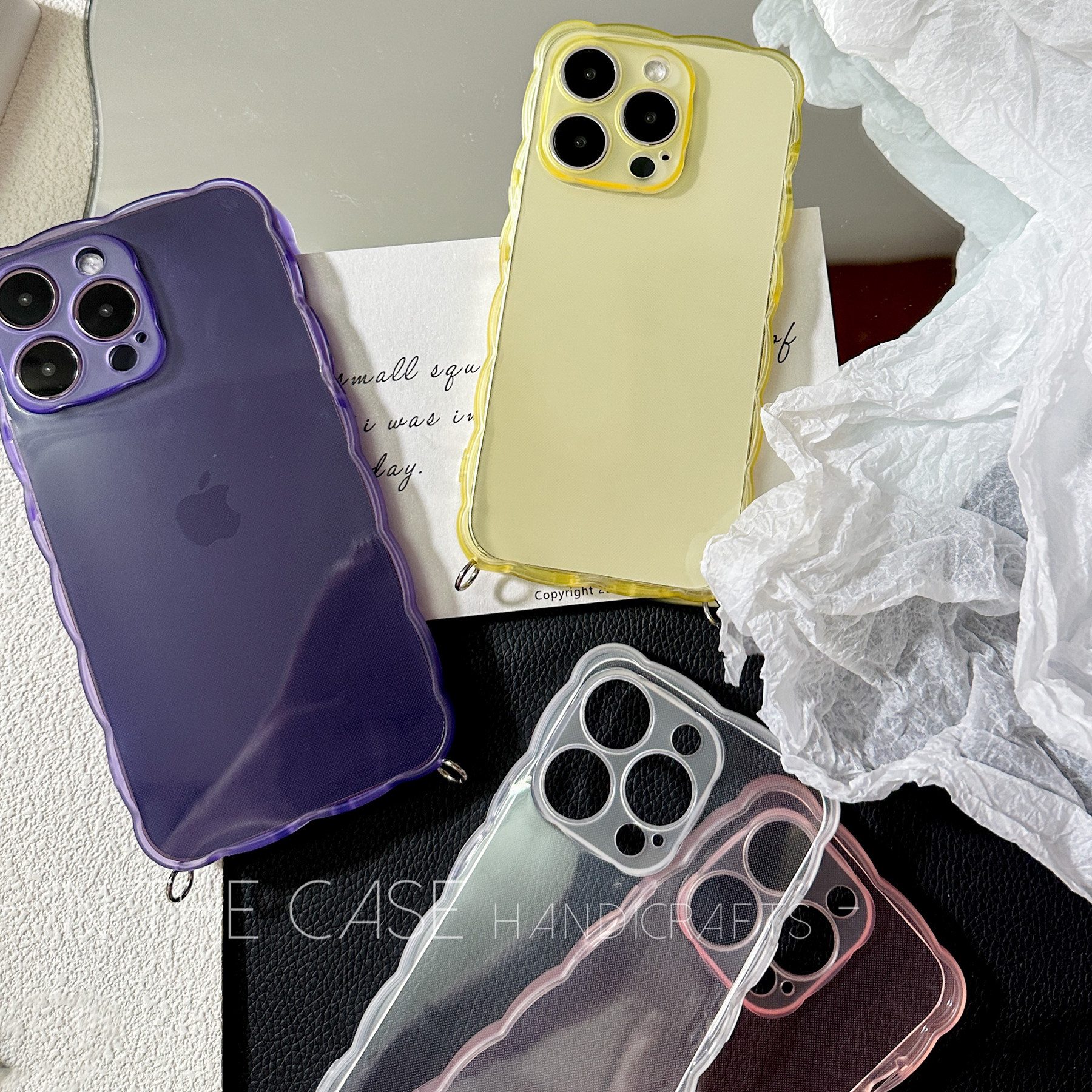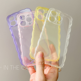 InTheCase 花瓣边框4色透明壳iPhone14promax甜妹ins简约全包清水带挂环可挂链条斜挎减震防摔手机壳适用苹果