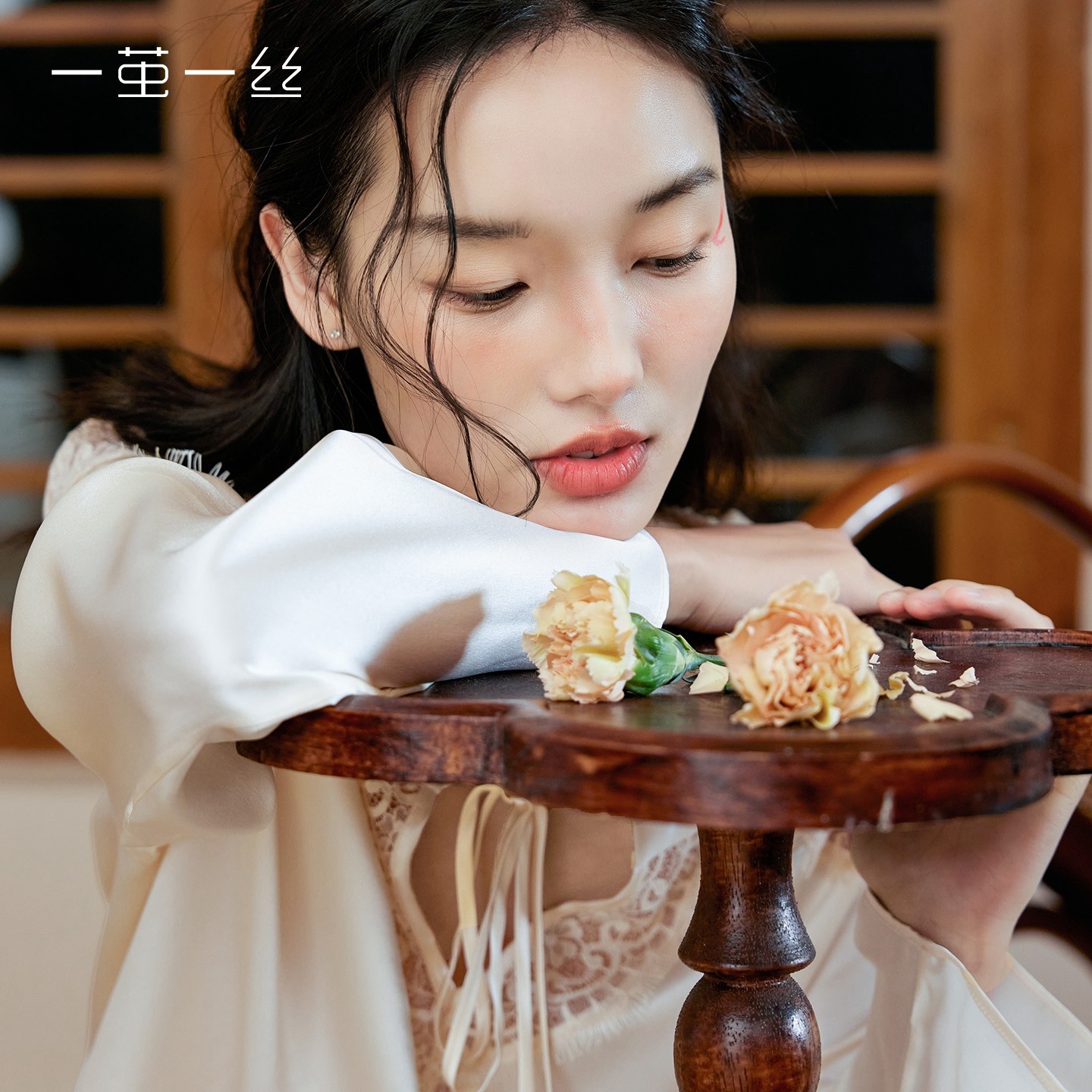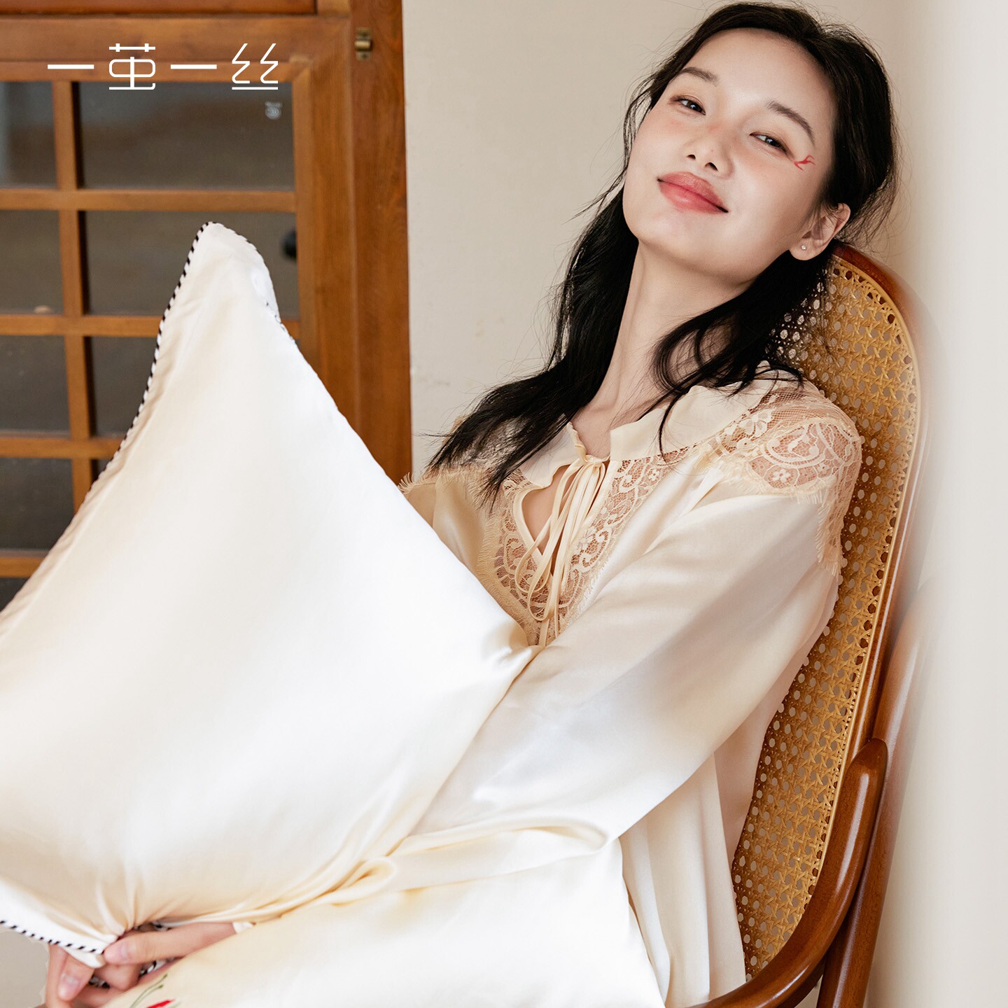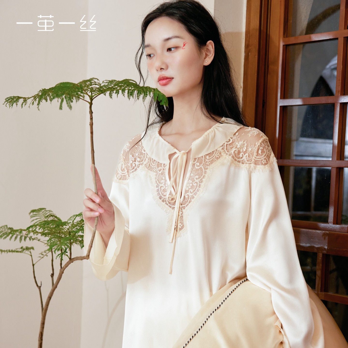 蕾丝拼接轻中式 套装 100%桑蚕丝可外穿家居服 真丝睡衣长袖 明星同款