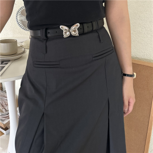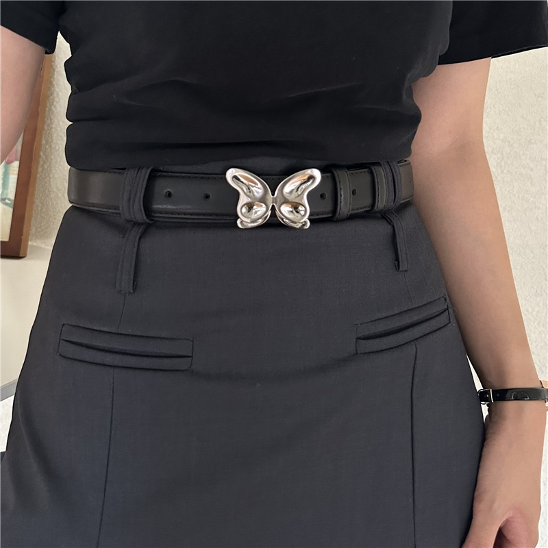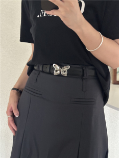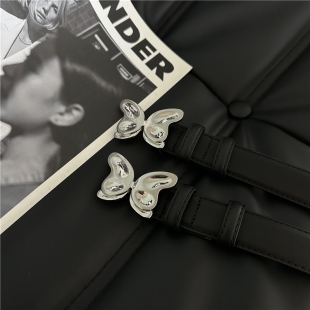 onetk皮带女小众蝴蝶银扣高级小香风配jk裙子牛仔裤 带真皮腰带ins