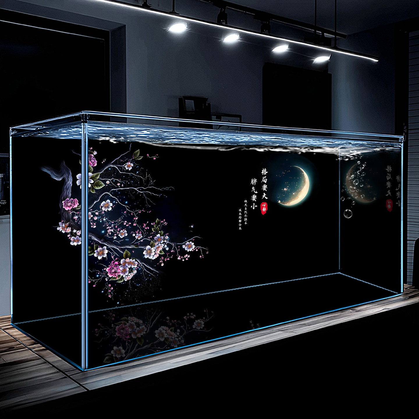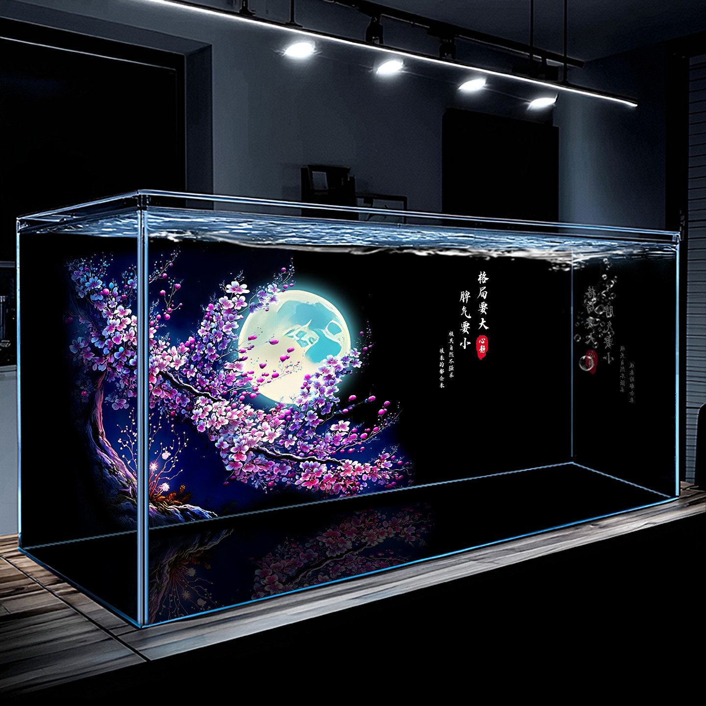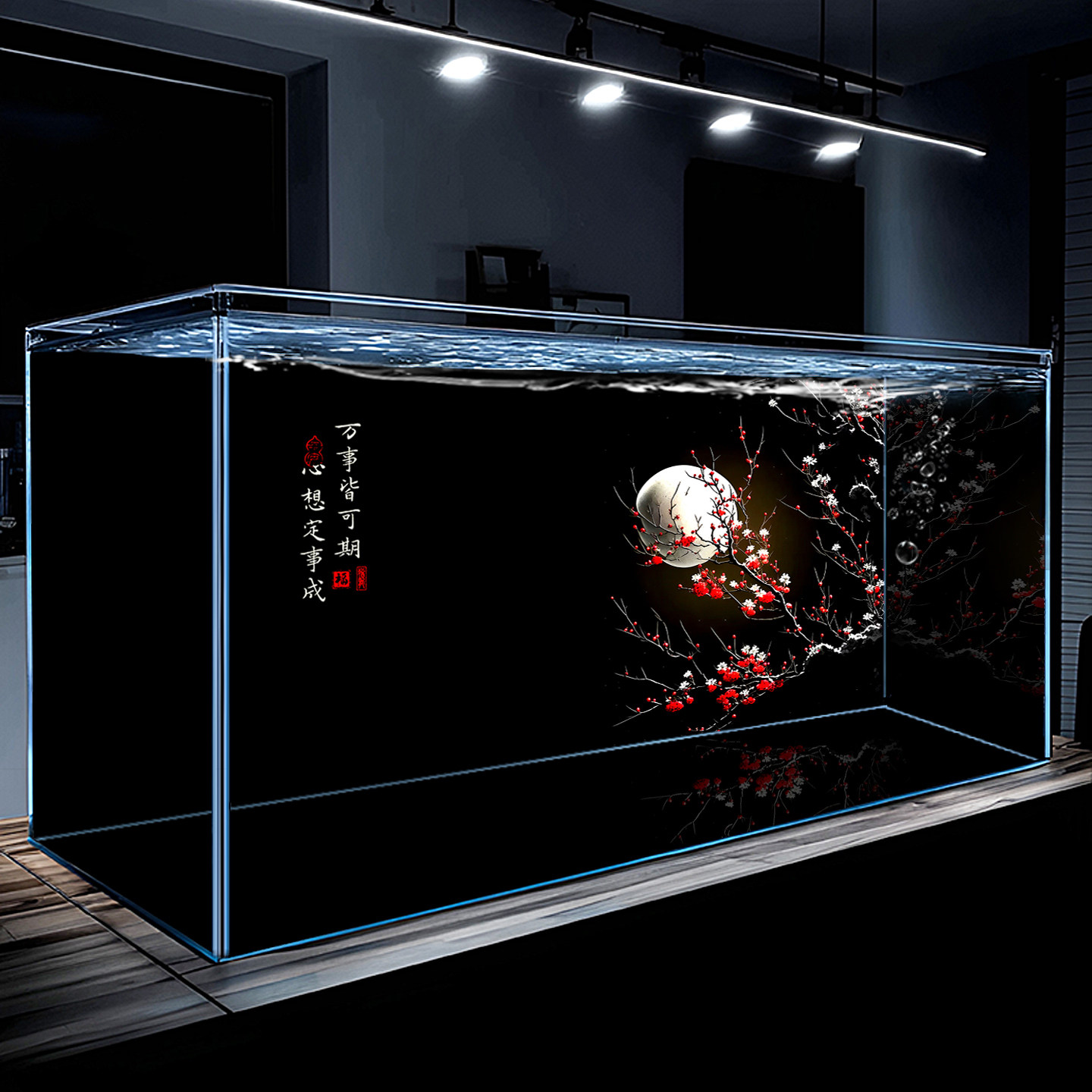 鱼缸背景画背景纸高清定制个性 创意唯美梅花龙鱼锦鲤蝴蝶鲤背景图