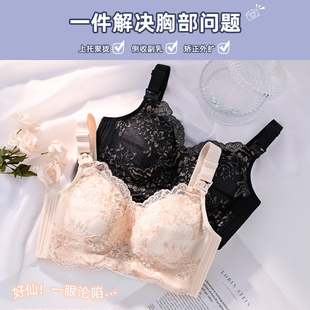 内衣女小胸聚拢中厚显大上托性感蕾丝收副乳防下垂调整型文胸罩秋