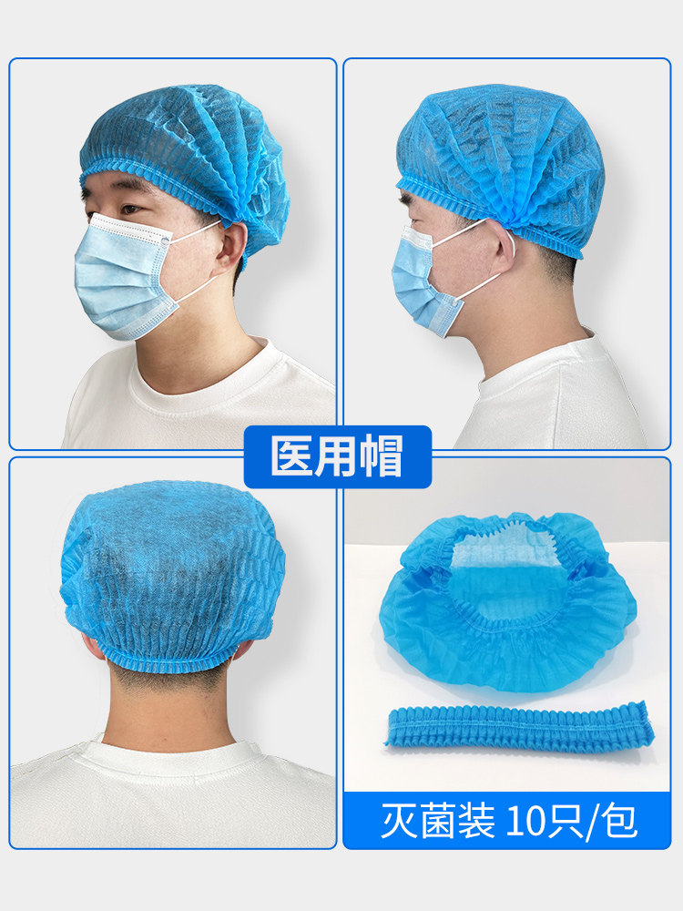 艾享医用一次性帽子弹力透气头套防护无菌外科手术帽条帽蓝色圆帽