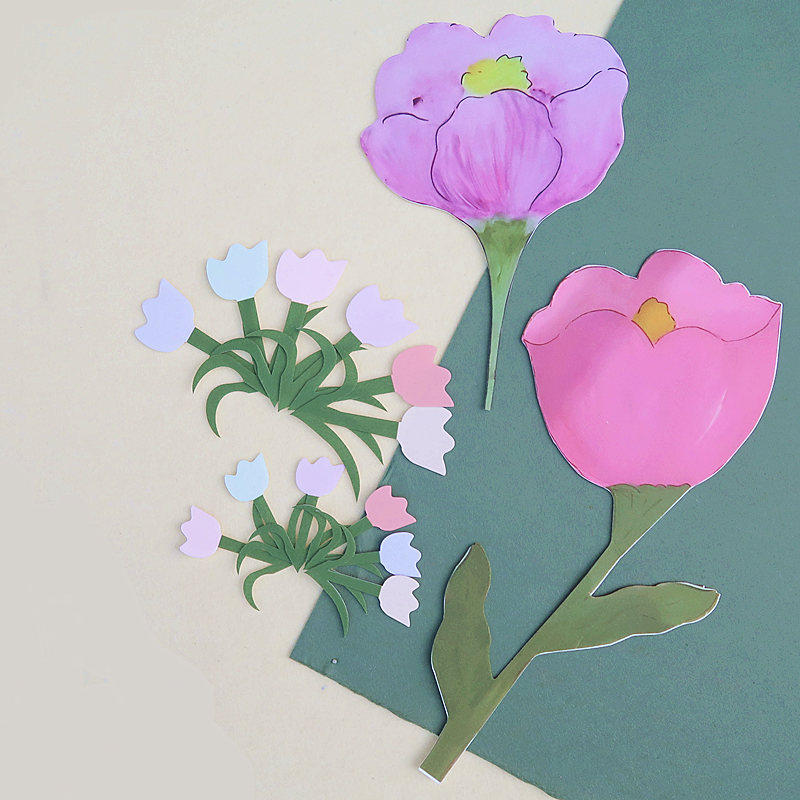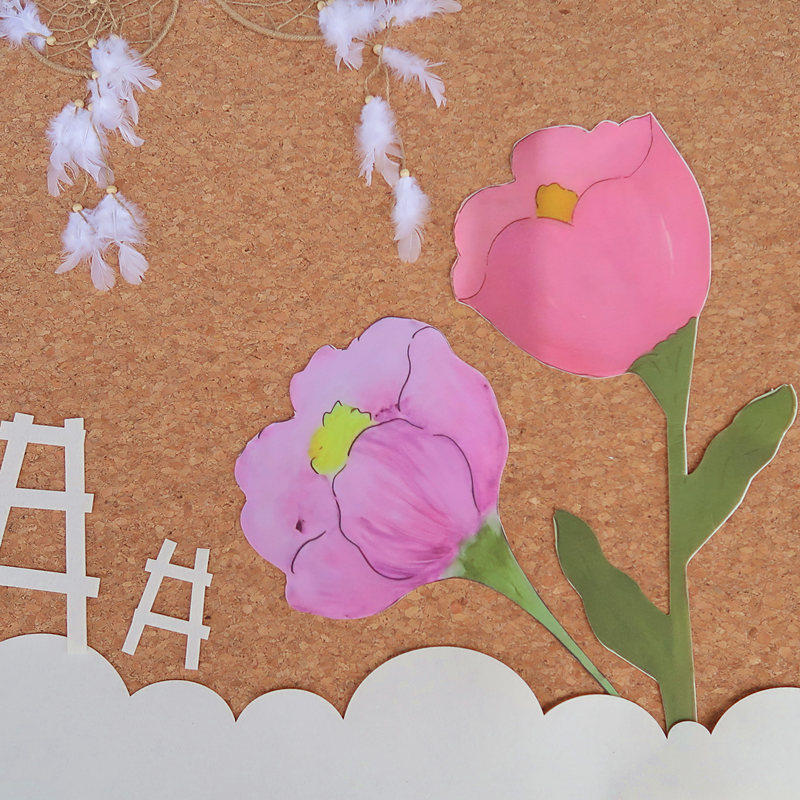 幼儿园环境布置装 饰 饰diy手工材料大号渐变郁金香花朵墙贴贴饰装