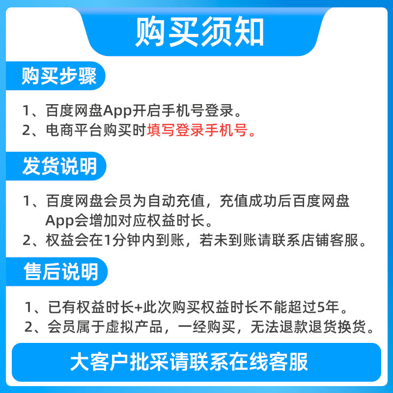 百度网盘VIP会员1年卡百度云盘12个月填手机号直充 充值中心
