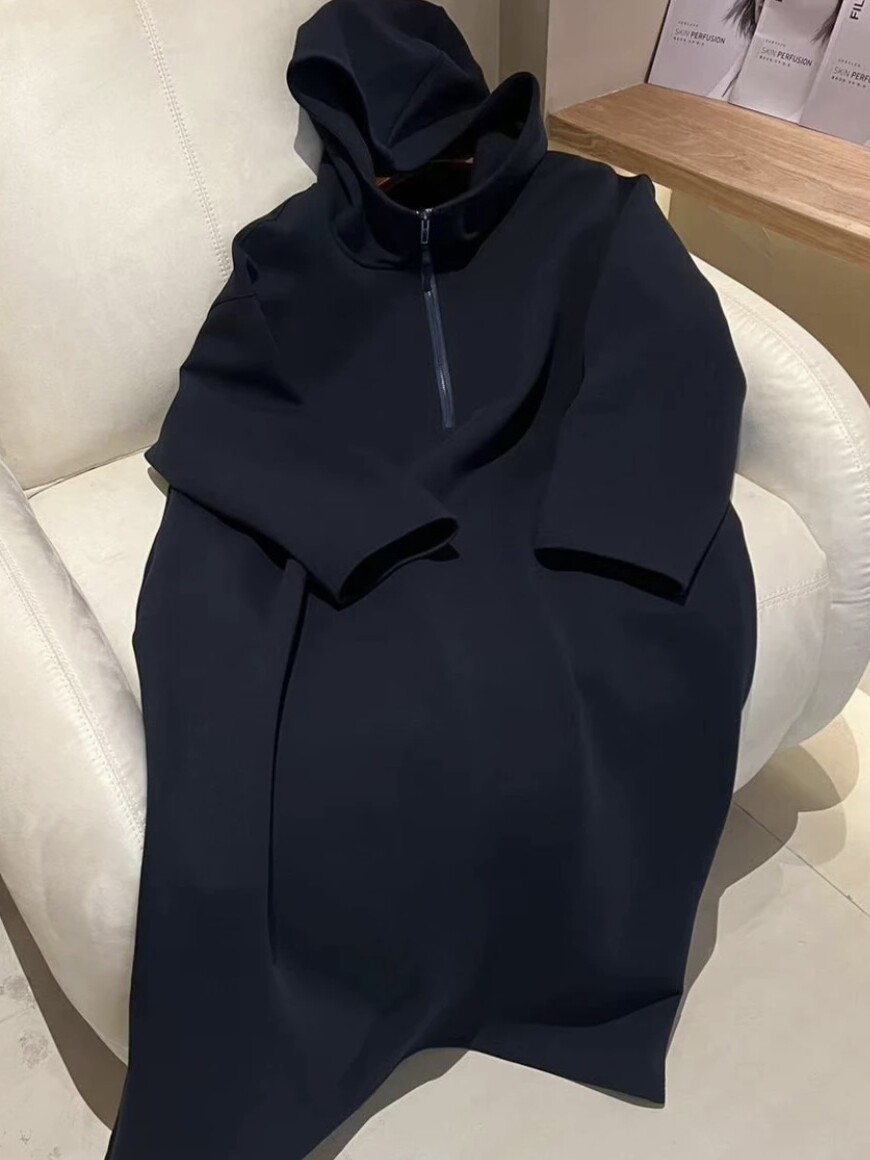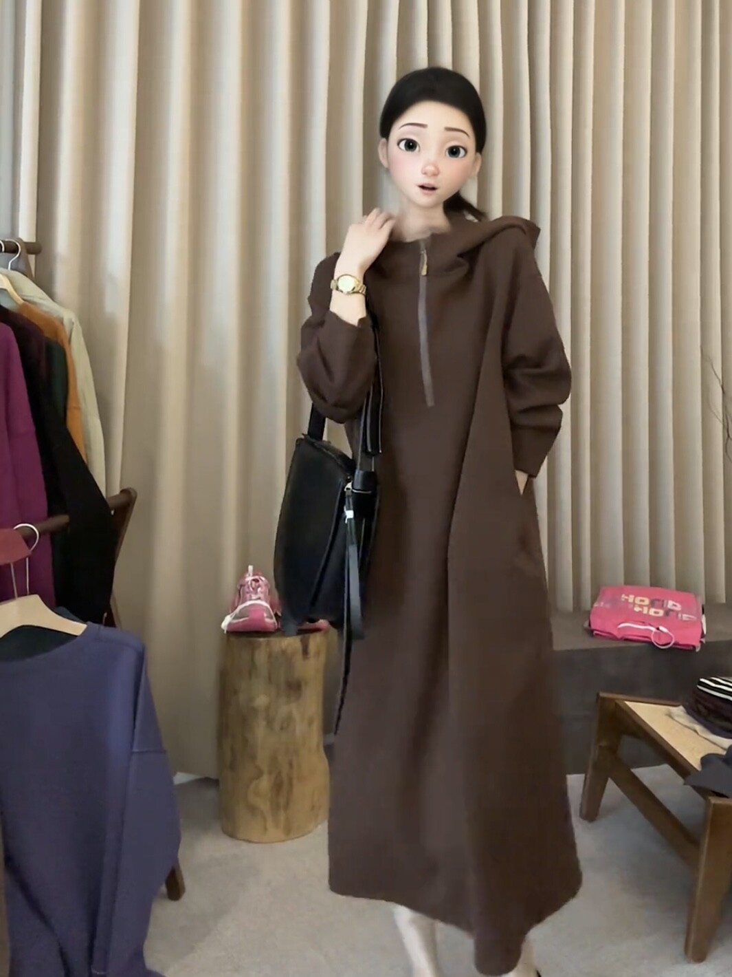 纯色小众气质减龄连帽长款 新款 卫衣裙子 连衣裙秋季 休闲简约长袖