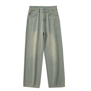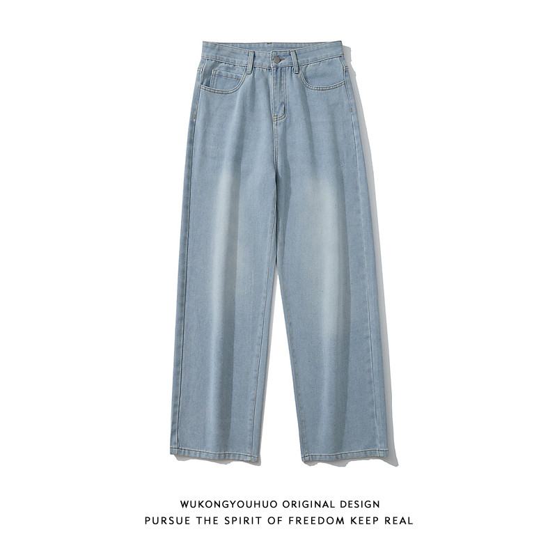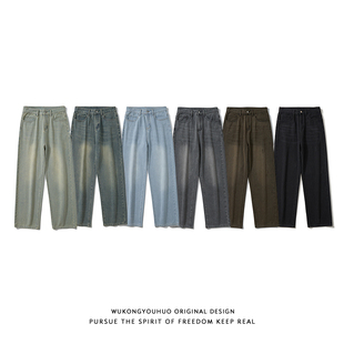 悟空有货潮牌复古做旧水洗直筒牛仔裤 男宽松ins百搭阔腿潮流长裤