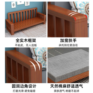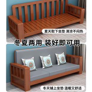 新中式 实木沙发小户型家用客厅沙发全套经济型冬夏两用全实木沙发