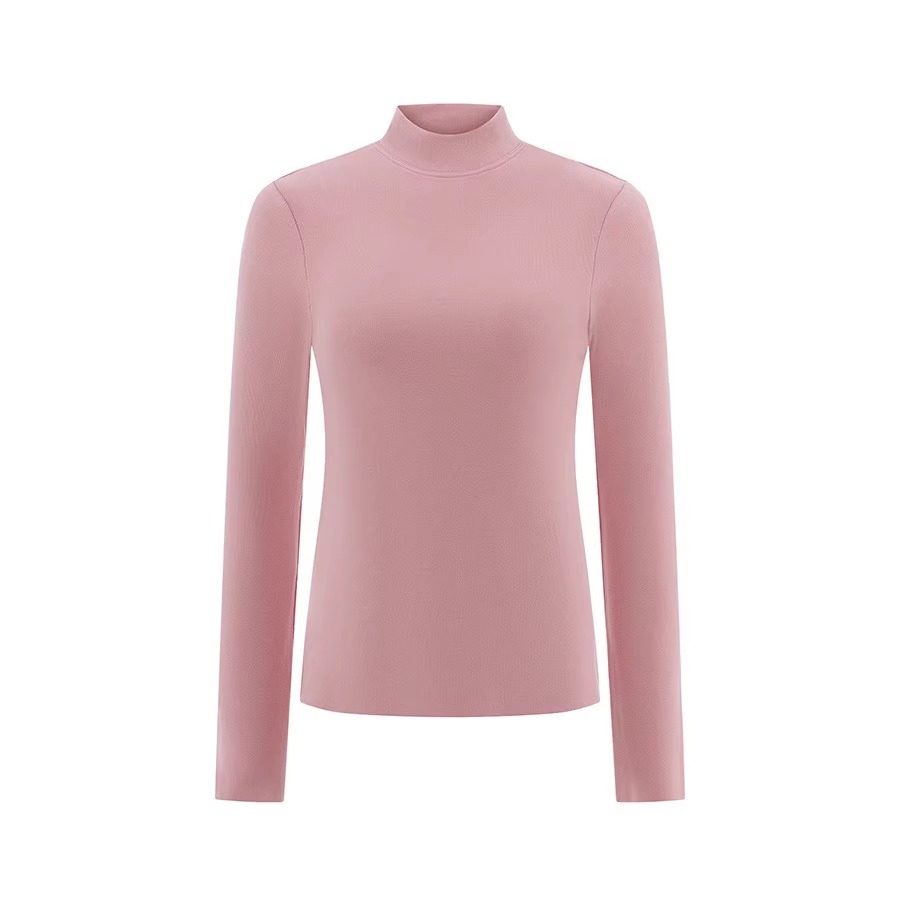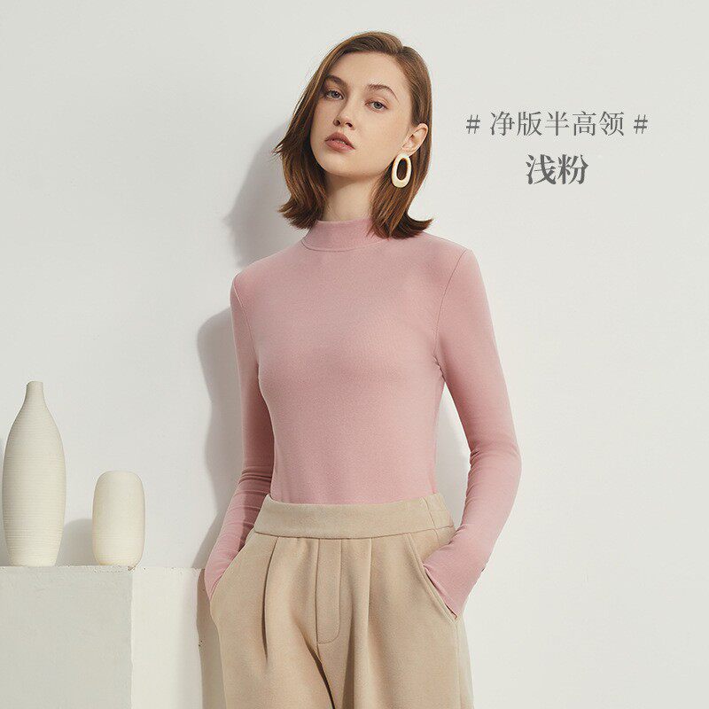 350克高端双面德绒半高领长袖 秋冬女纯黑色套头保暖毛衣 T恤打底衫