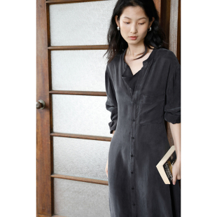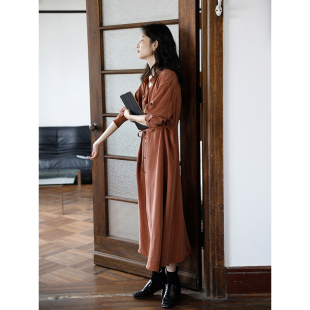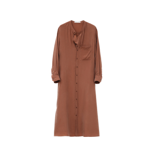 到手299元 高级感红色裙子中长款 荡领长袖 连衣裙中长款 女 衬衫