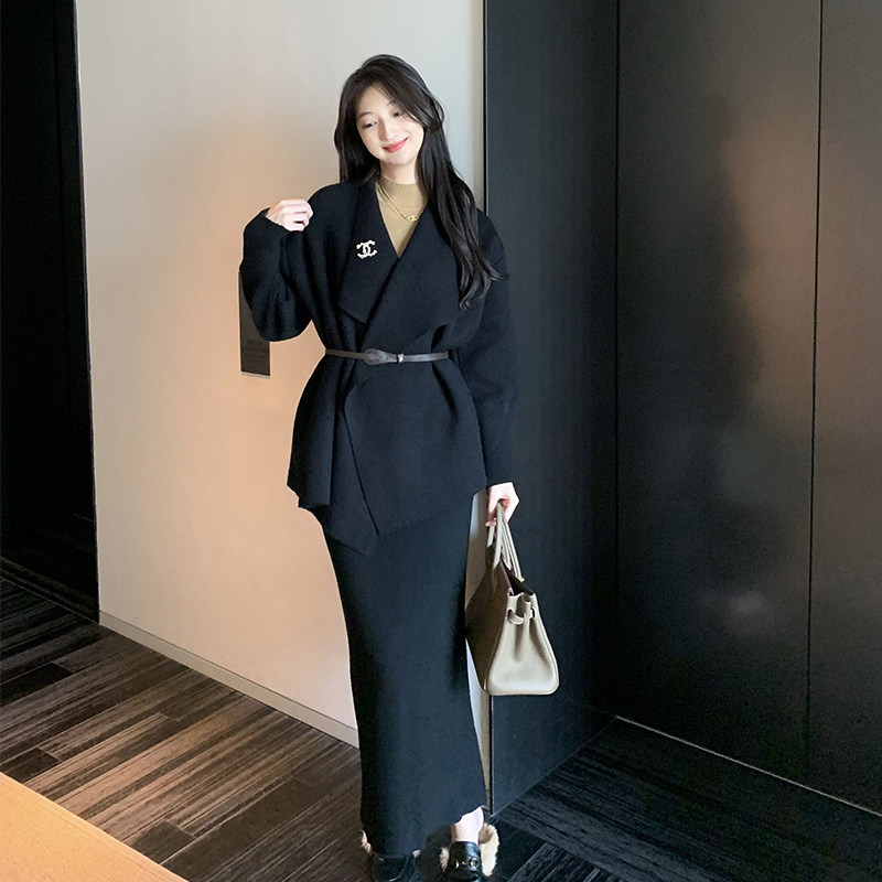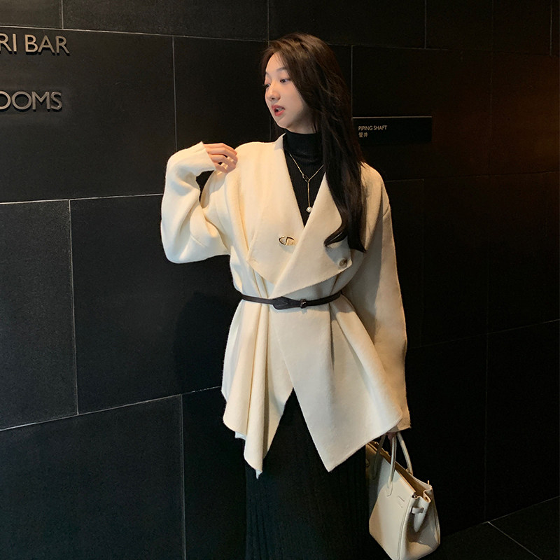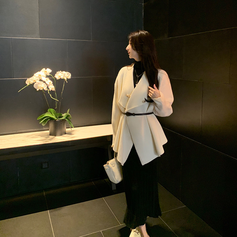 大翻领 法式 设计感毛衣外套慵懒翻领针织衫 清仓商品不退不换