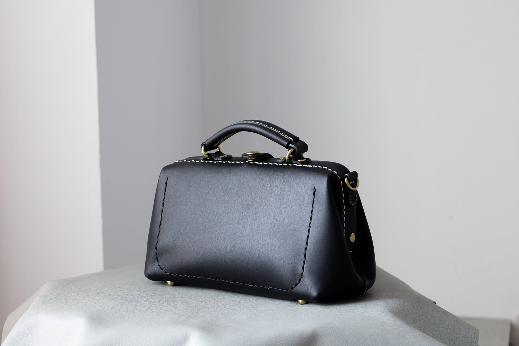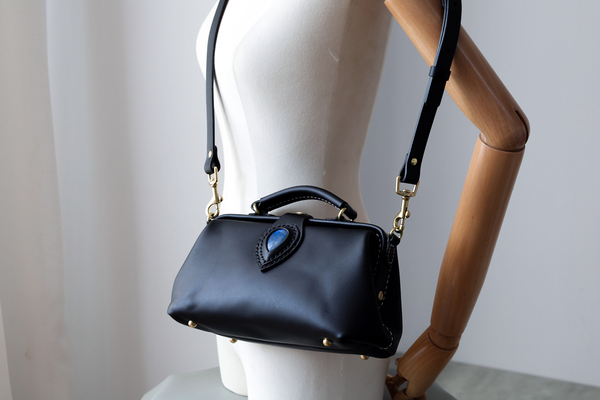 手提口金包 医生包斜挎包 黑色 |复古横版 天使之眼
