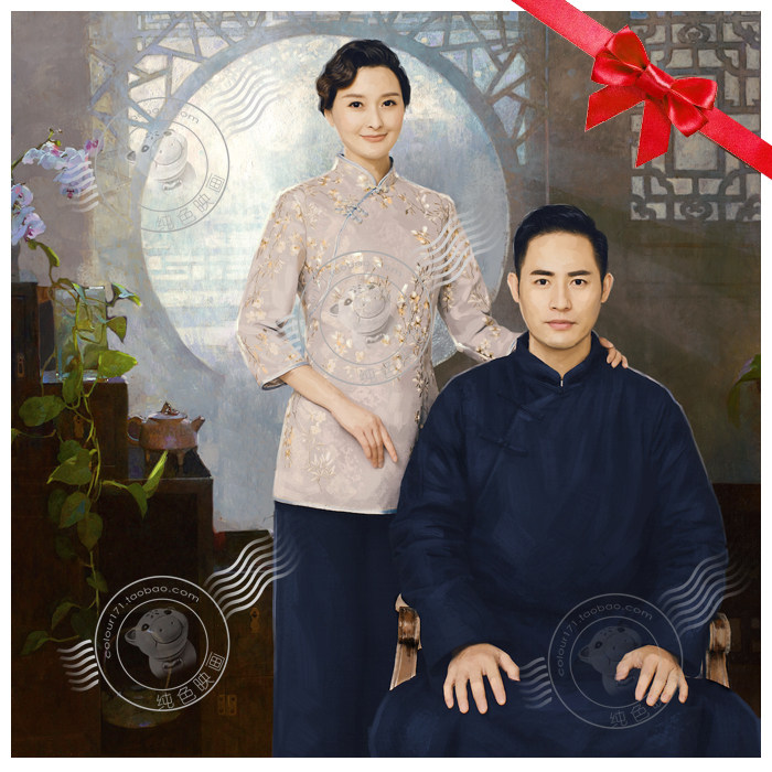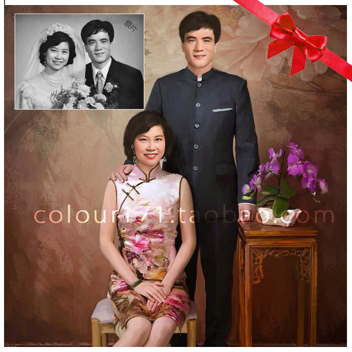 定制油画人像真人肖像纯手绘风景宠物客厅挂画情侣婚纱照装 饰画