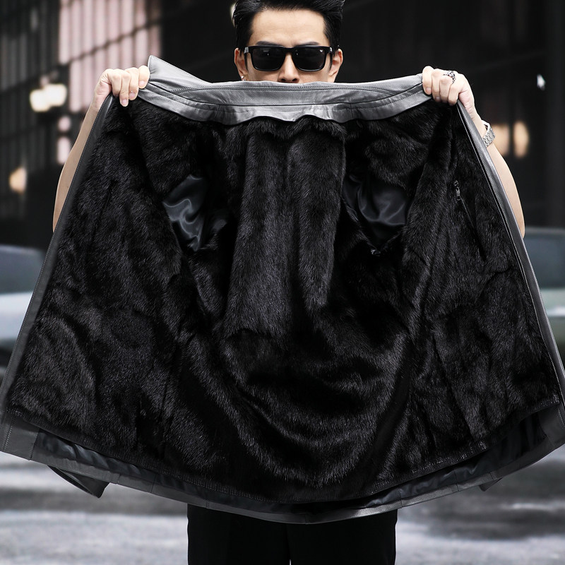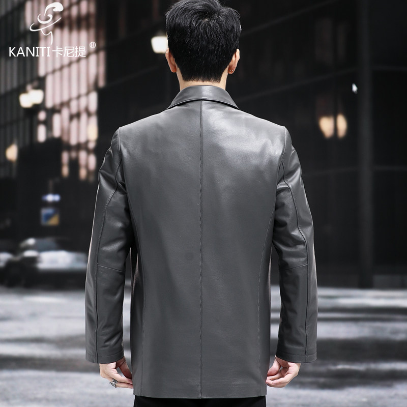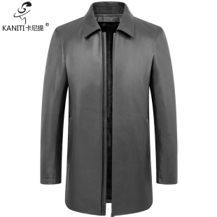 高端牛皮真皮皮衣男款 暖御寒中年外套 尼克服翻领商务休闲保中长款