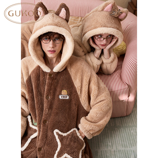 情侣家居服套装 加厚加绒保暖睡衣女士男冬季 开衫 长裤 法兰绒长袖