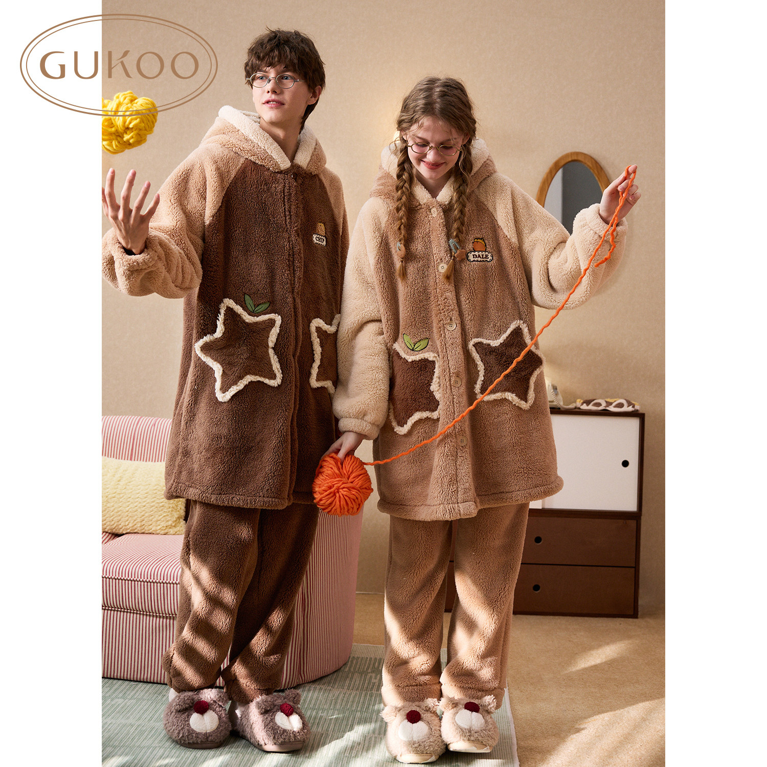 雪尼尔半边绒条纹加厚保暖家居服套装 Gukoo 果壳睡衣女冬款