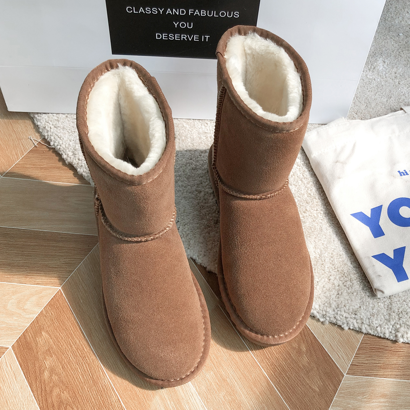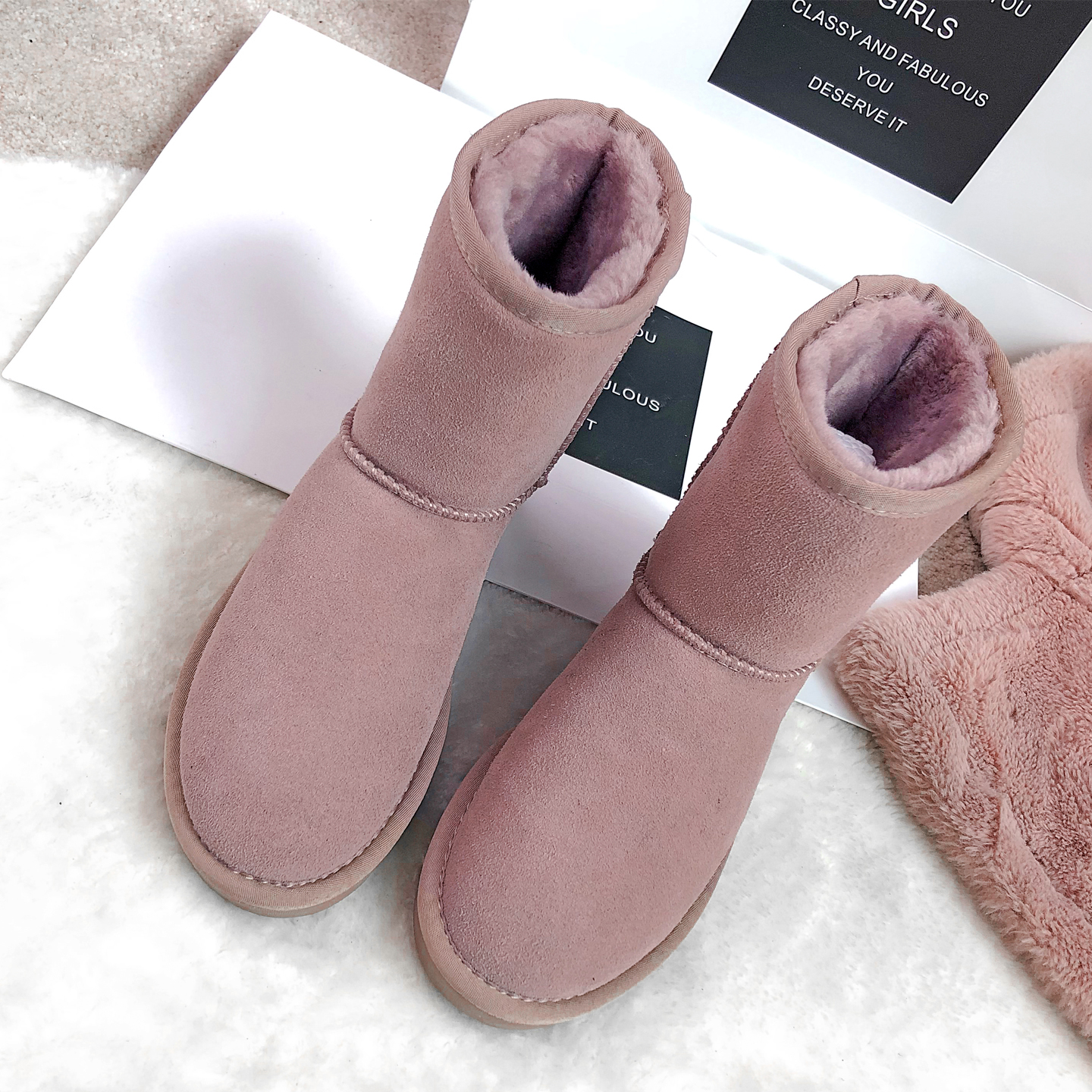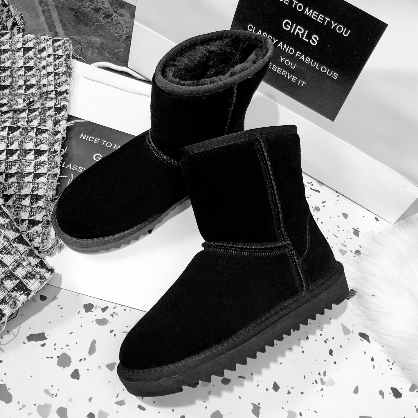 雪地靴女内增高7cm冬季 加绒中筒短靴小个子皮毛一体保暖面包棉鞋