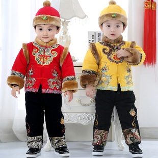 秋冬唐装 男加绒保暖三件套复古汉服中国风加厚棉袄盘口棉衣居士服