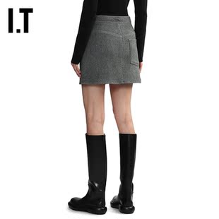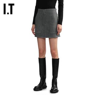 时髦复古合身包臀裙呢子A字裙2SK03BXL 毛呢半身裙新款 LVIR女装