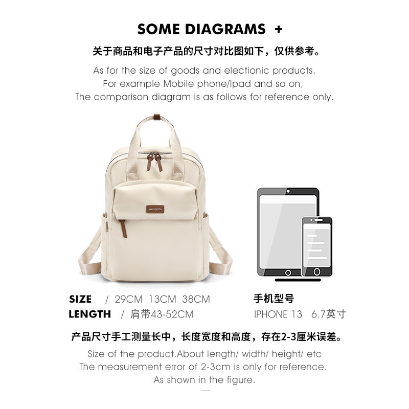 张予曦同款 旅行通勤背包 欧时纳华夫双肩包女生上课书包2025新款