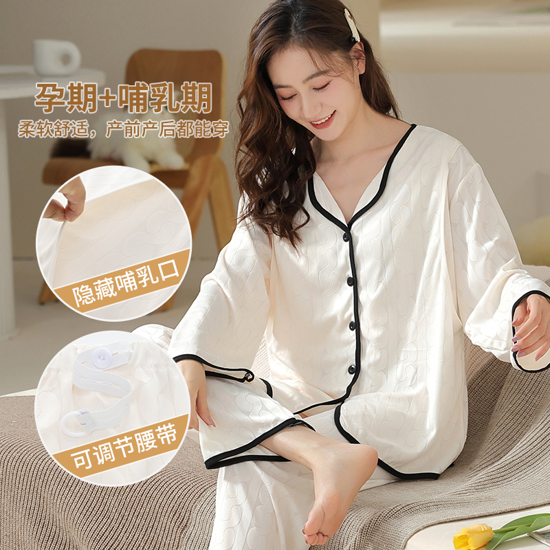 加大码 套装 家居服春秋 秋冬季 芬腾女士睡衣空气棉夹层纯棉加厚长袖