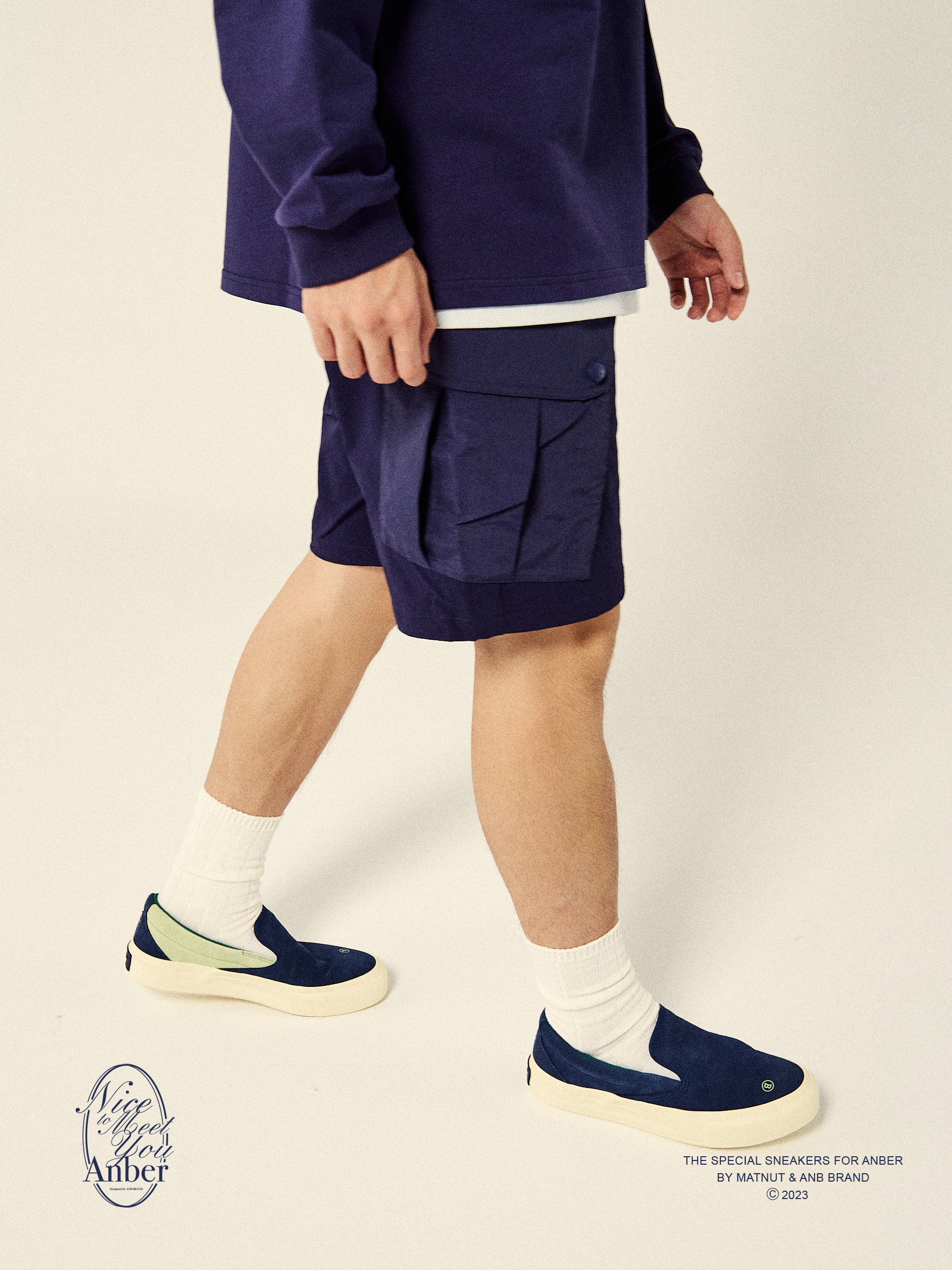ONE 藏青色 ANB 板鞋 一脚蹬 STEP 联名款 BRAND MATNUT