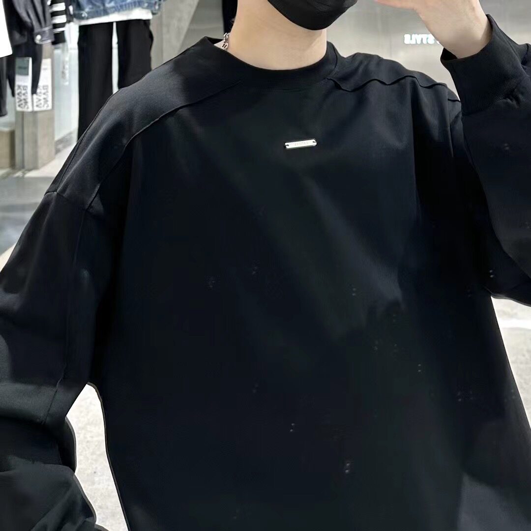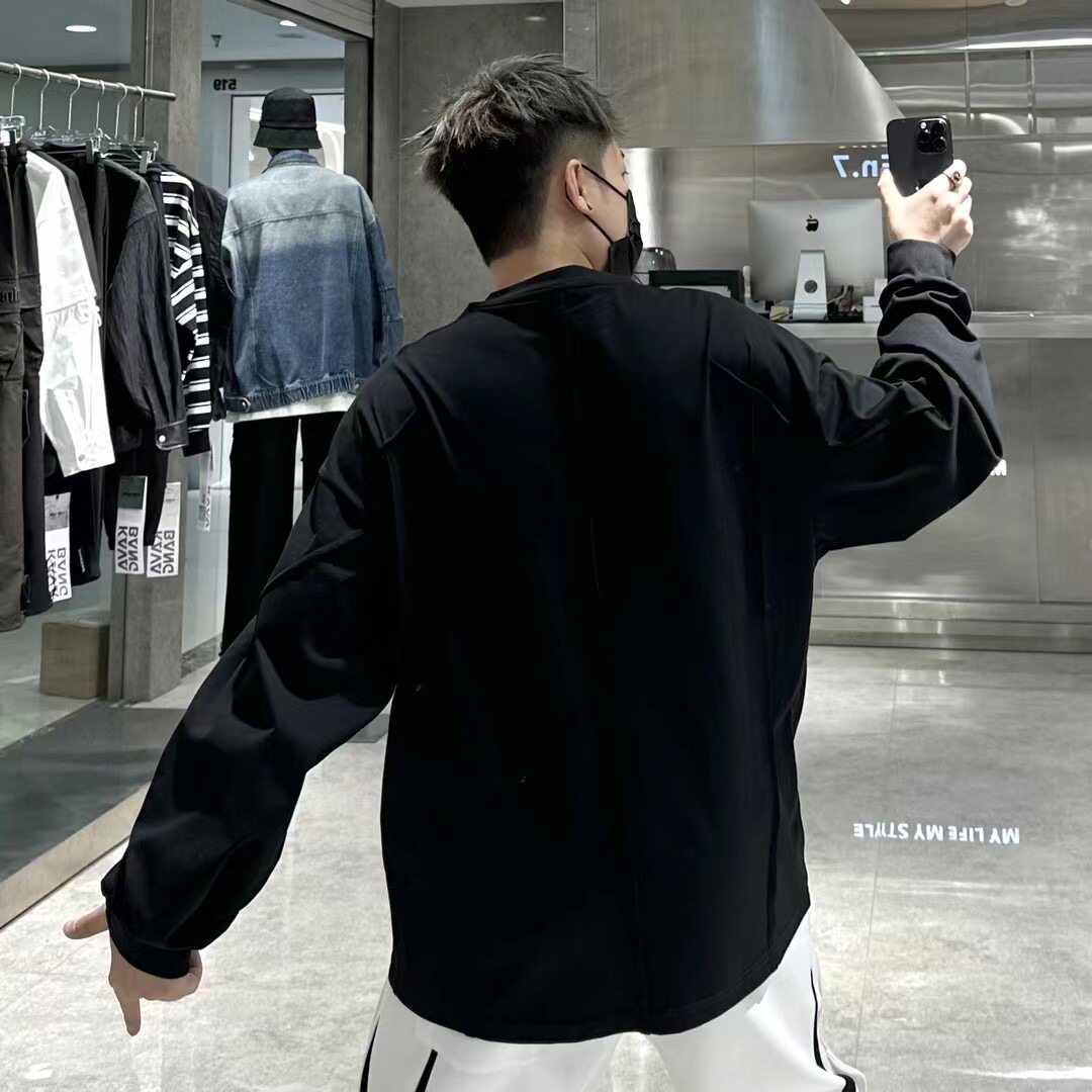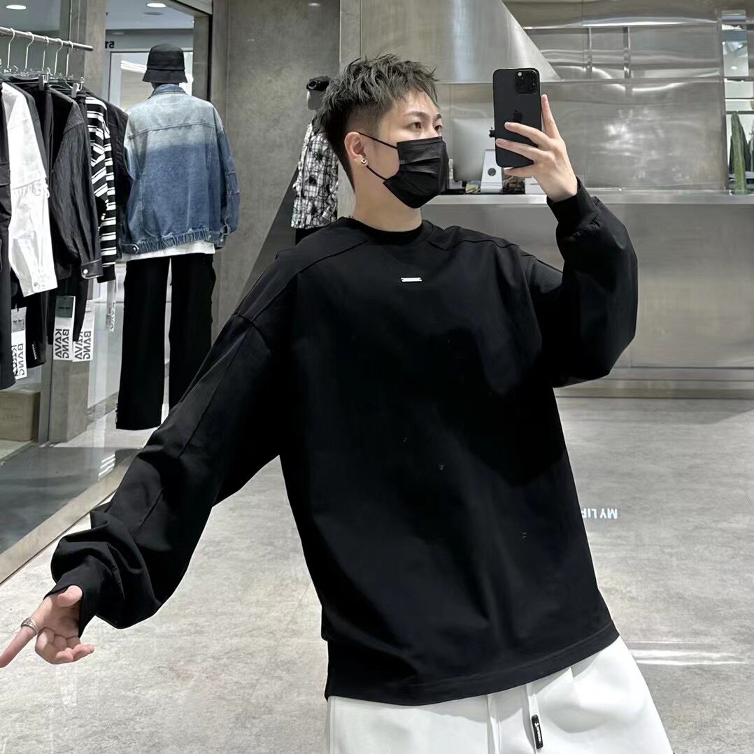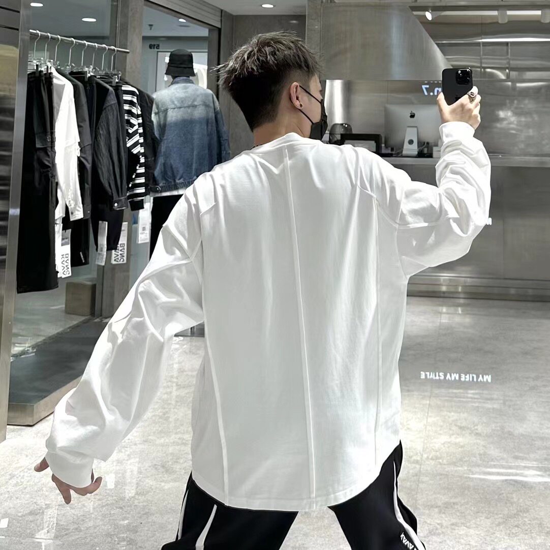 立体剪裁宽松简约百搭纯棉打底衫 T恤男ins韩版 上衣潮 长袖 潮牌秋季