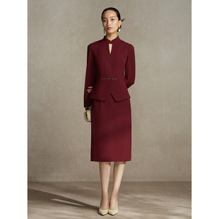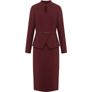 麻感西装 新款 料礼服裙 通勤气质假两件套裙2023秋冬装 粉蓝衣橱时尚