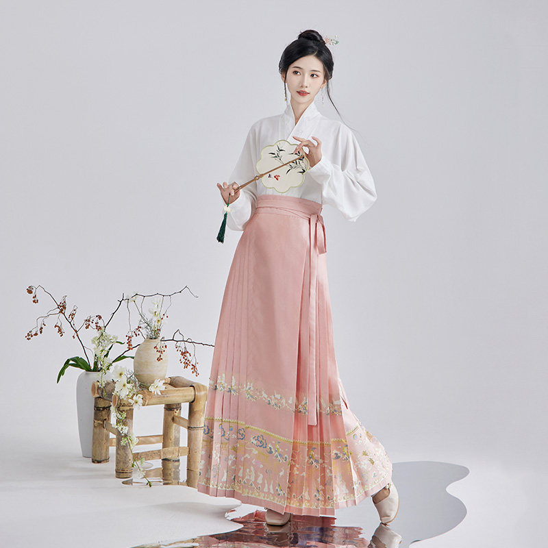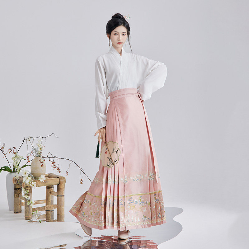 改良明制2024新款 国风 女新中式 粉色马面裙套装 小个子汉服 玉兔