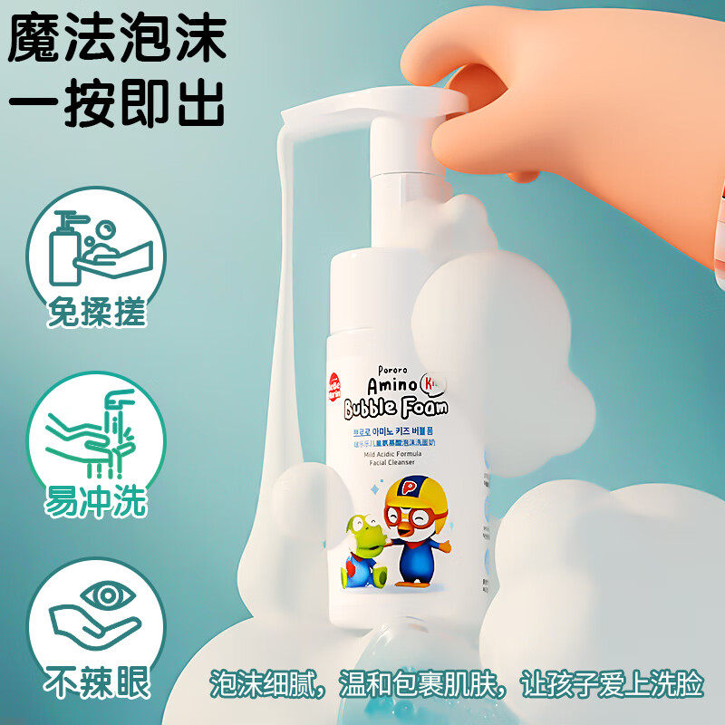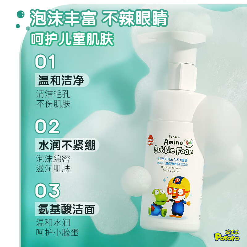 啵乐乐儿童洗面奶3 12岁以上宝宝男女孩氨基酸洁面泡沫 自营
