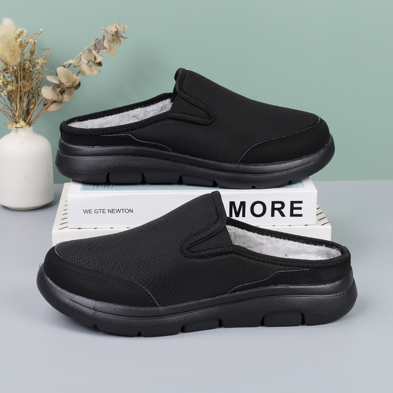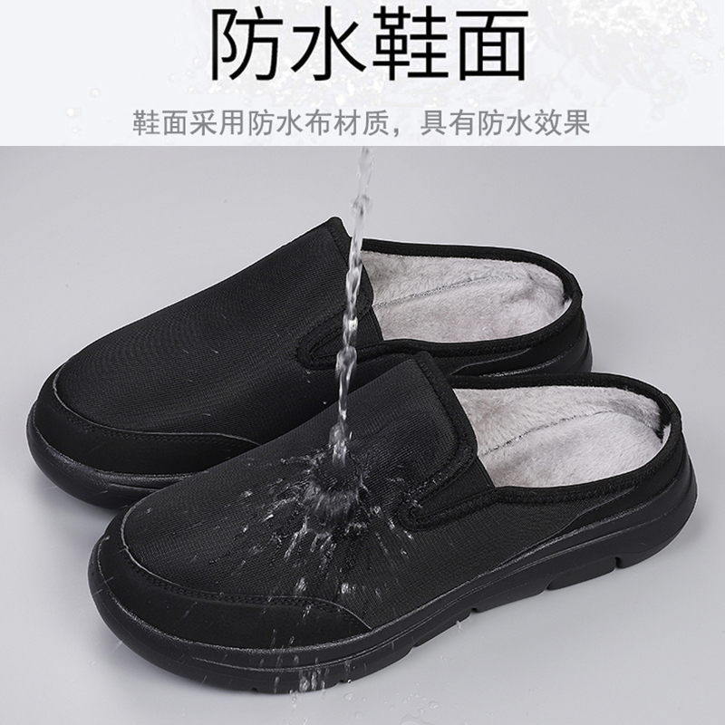新款 中老年妈妈防滑半拖鞋 大码 加绒保暖防水棉鞋 女 老人棉拖鞋 冬季