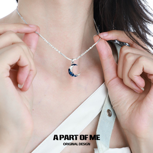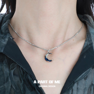 原创蓝色月亮吊坠项链小众设计无性别细闪简约链条男女