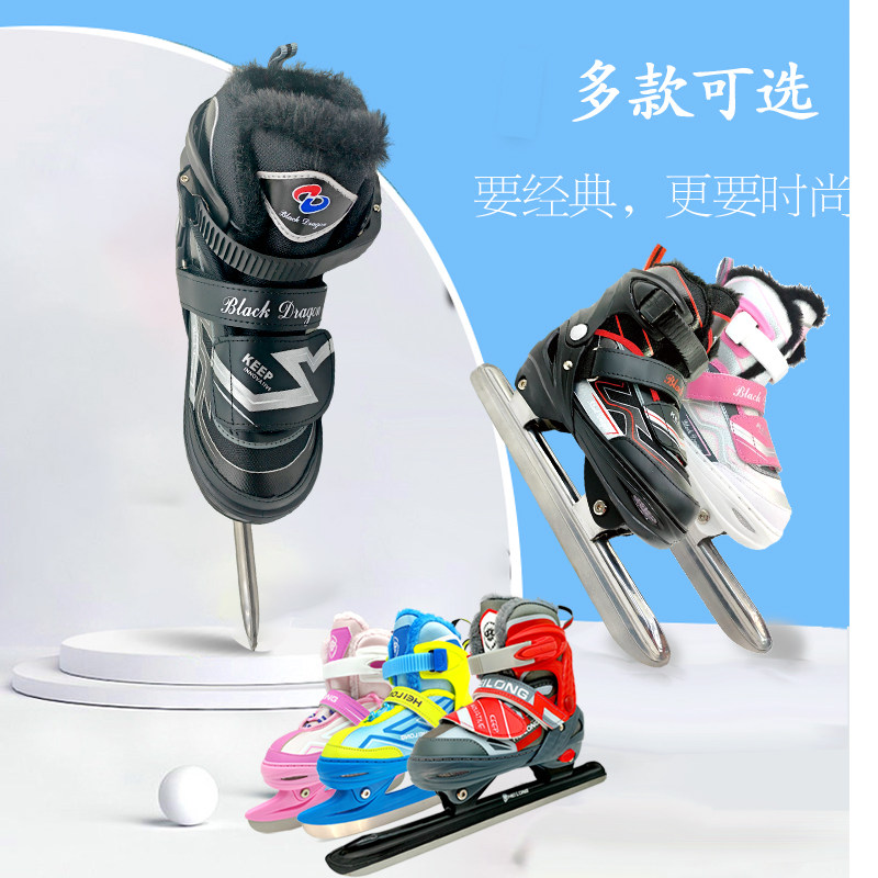 成人学生男加厚保暖女初学者钢支架 码 黑龙速滑冰刀鞋 儿童可调鞋