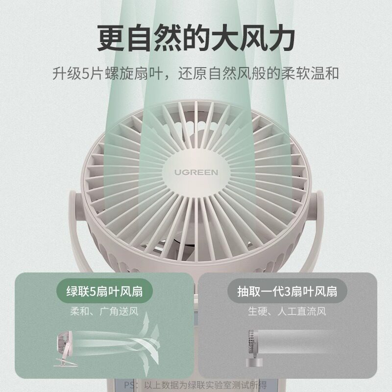 绿联小电风扇学生宿舍便捷式 摇头便携迷你小型夹子扇 usb充电台式