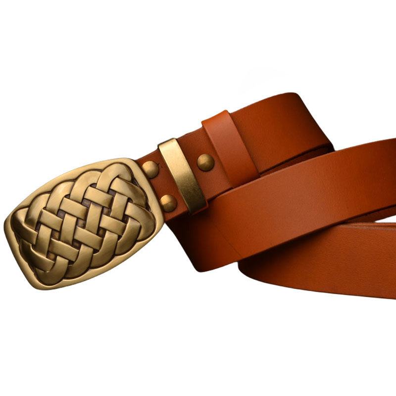 皮带男植鞣革头层牛皮针扣休闲真皮裤 带手工加长黄铜板扣腰带潮流