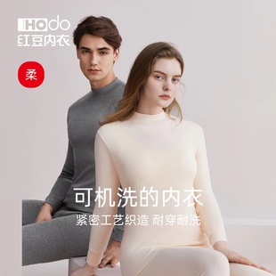 全棉毛衫 高领100%纯棉情侣男女士薄保暖内衣套装 红豆秋衣秋裤 正品