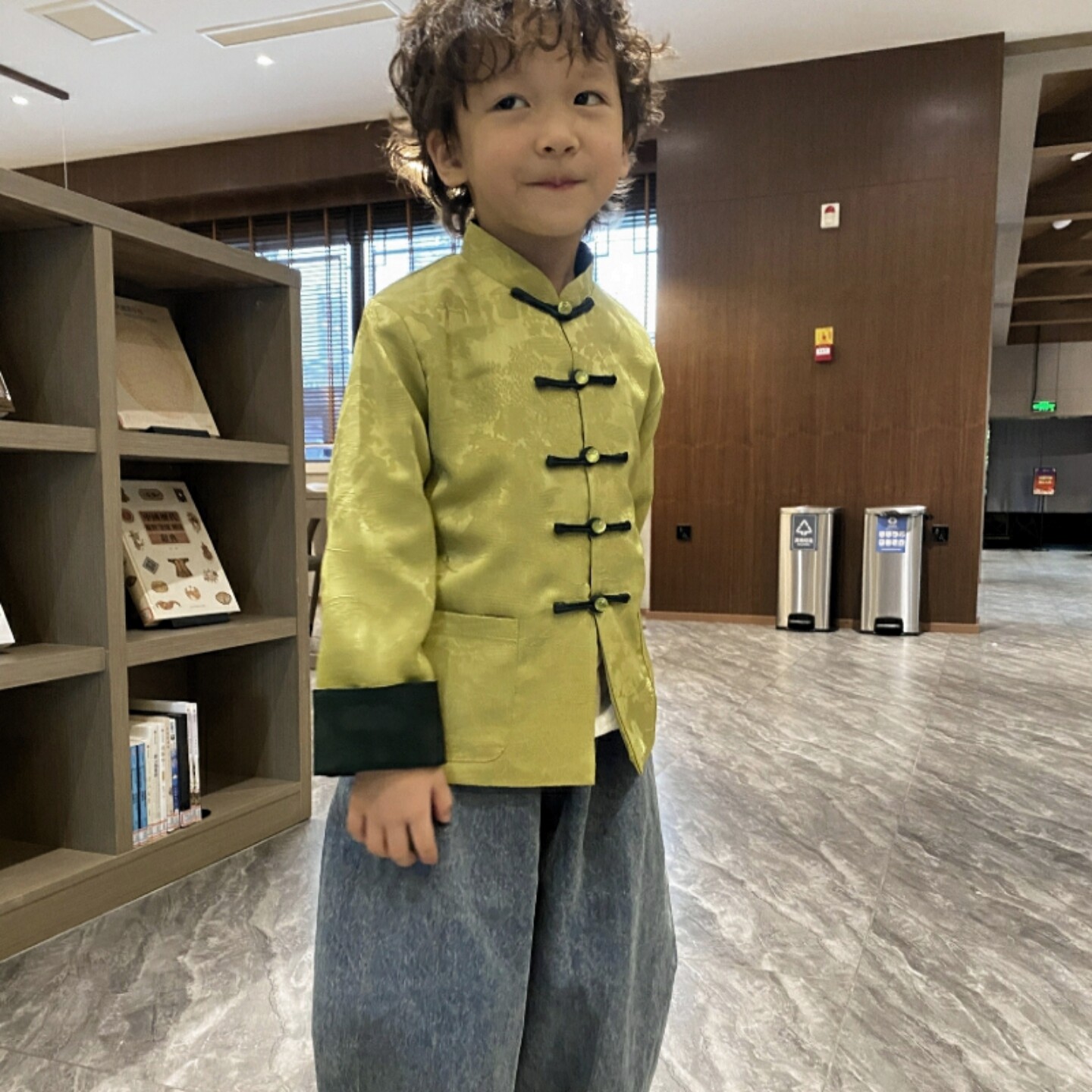 新中式 新款 男女宝汉服小清新时髦撞色上衣提花童外套 春装 男童唐装