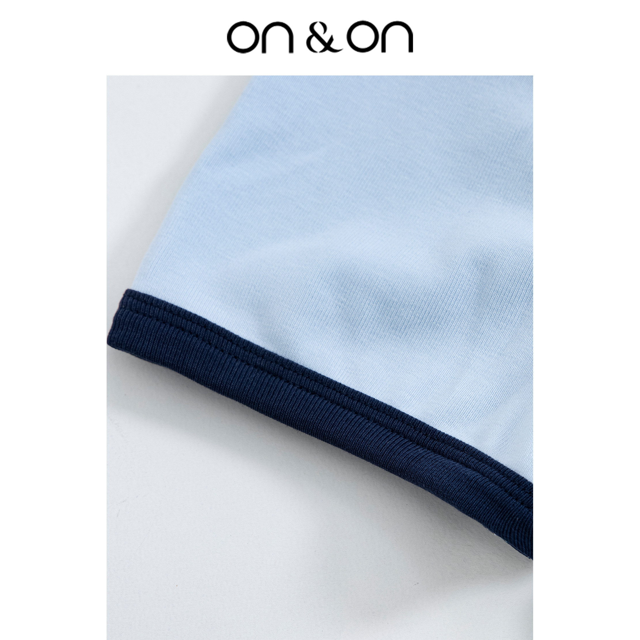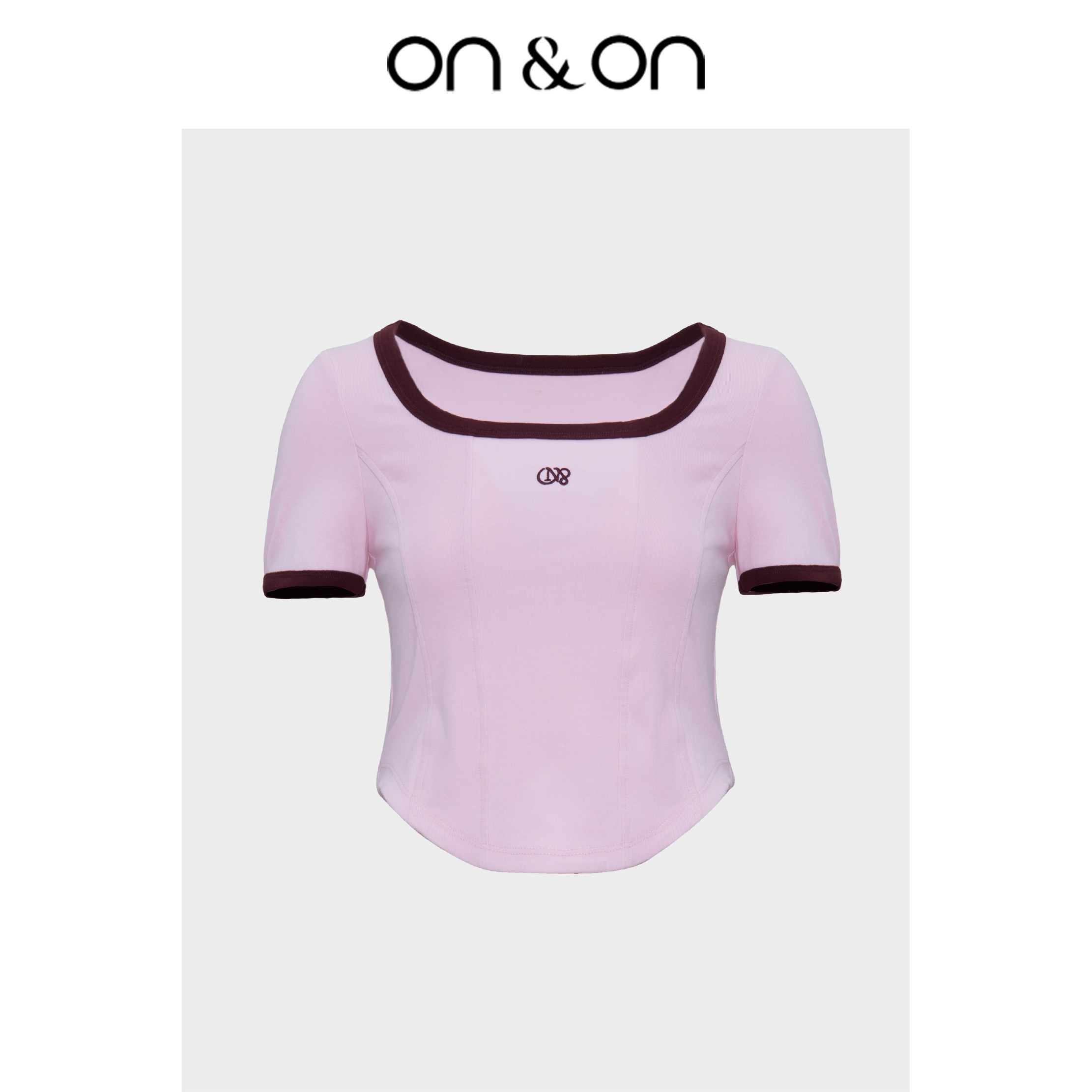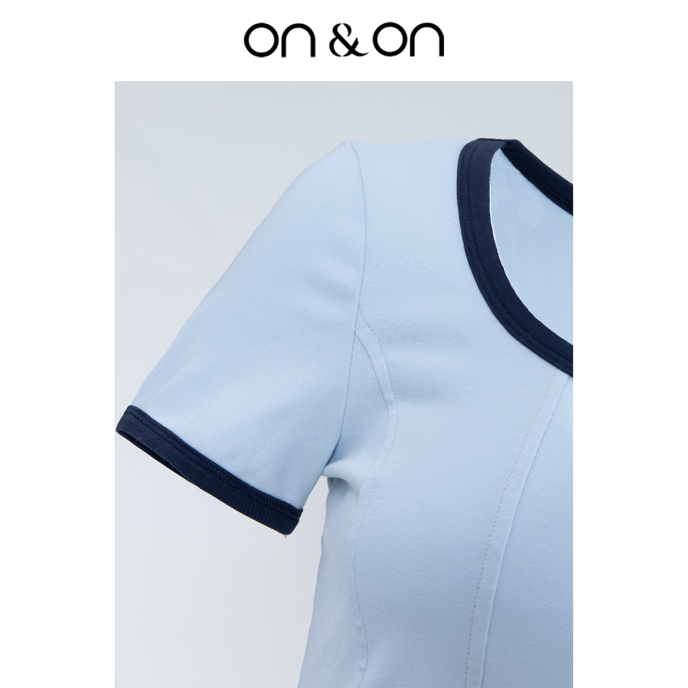 安乃安夏季 T恤百搭时尚 新款 设计感时尚 撞色拼接刺绣短款 ON&ON