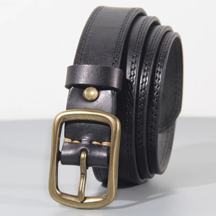 铜扣皮带女真皮 腰带软 头层纯牛皮手工复古ins风潮棕色百搭牛仔裤