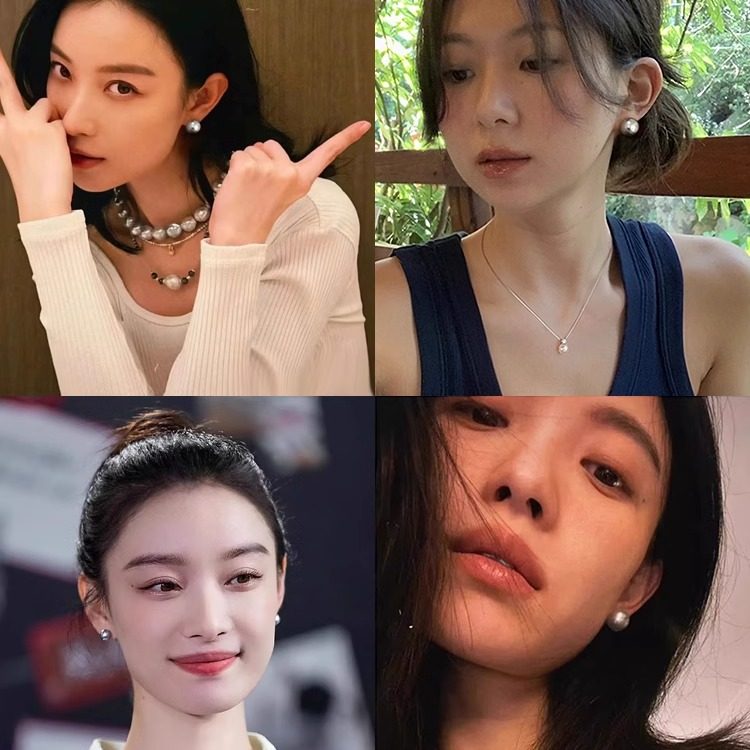 DOUDOUSTORE925银针强光ins正圆珍珠fever同款 博主耳钉复古耳环女