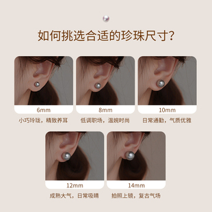 珍珠耳钉纯银999纯银耳钉女大珍珠耳饰气质珍珠耳环高级感养耳洞