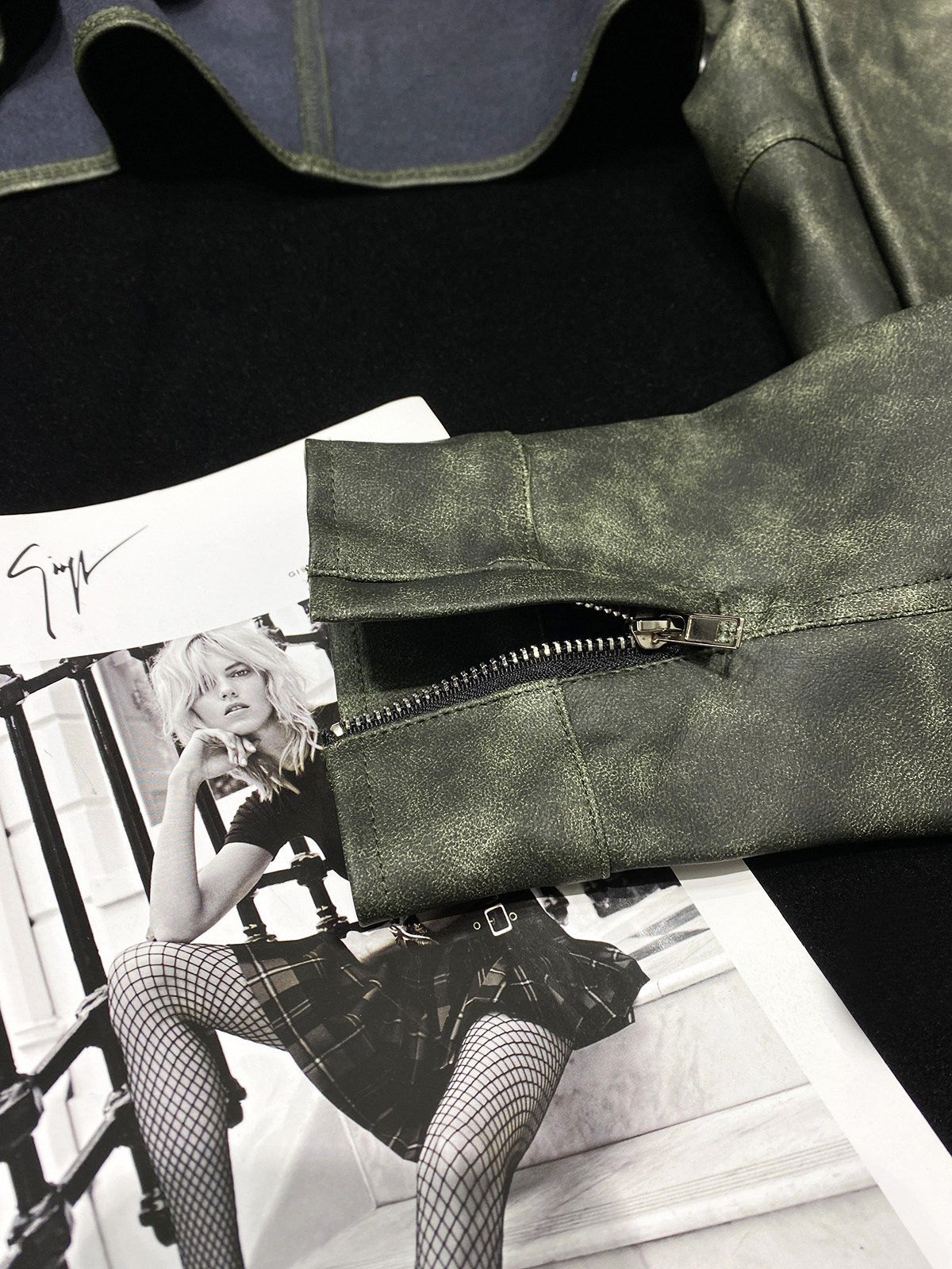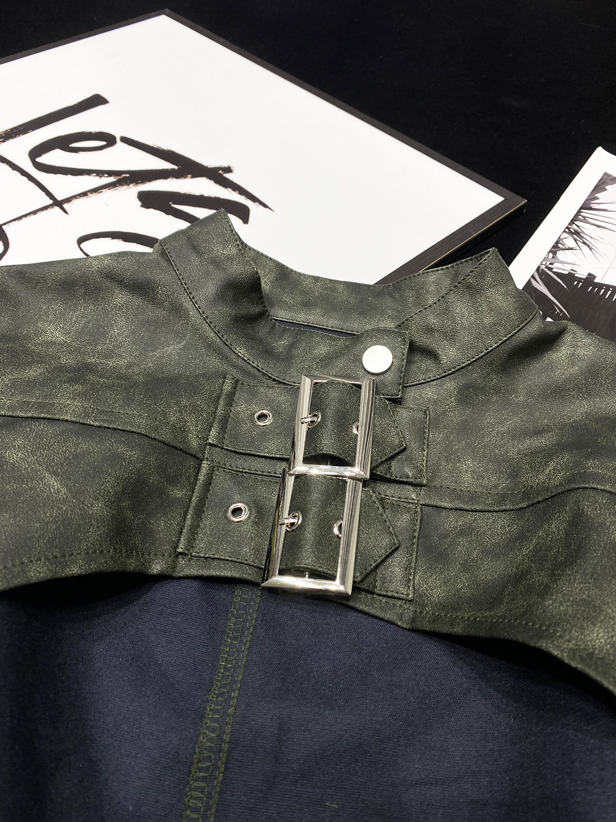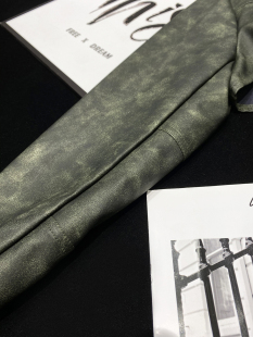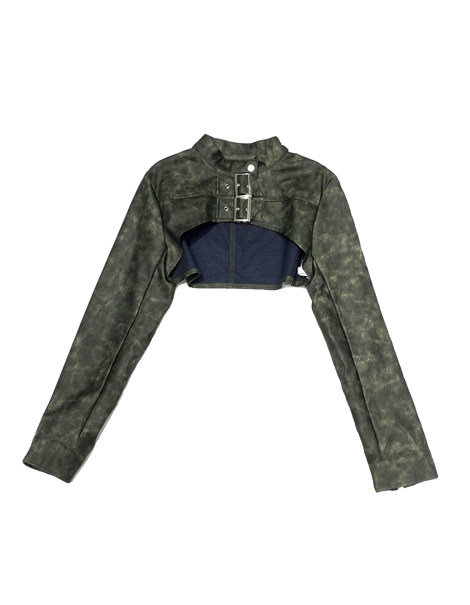 CCA自制美式 复古辣妹水洗绿色机车皮衣外套皮扣超短PU皮坎肩披肩