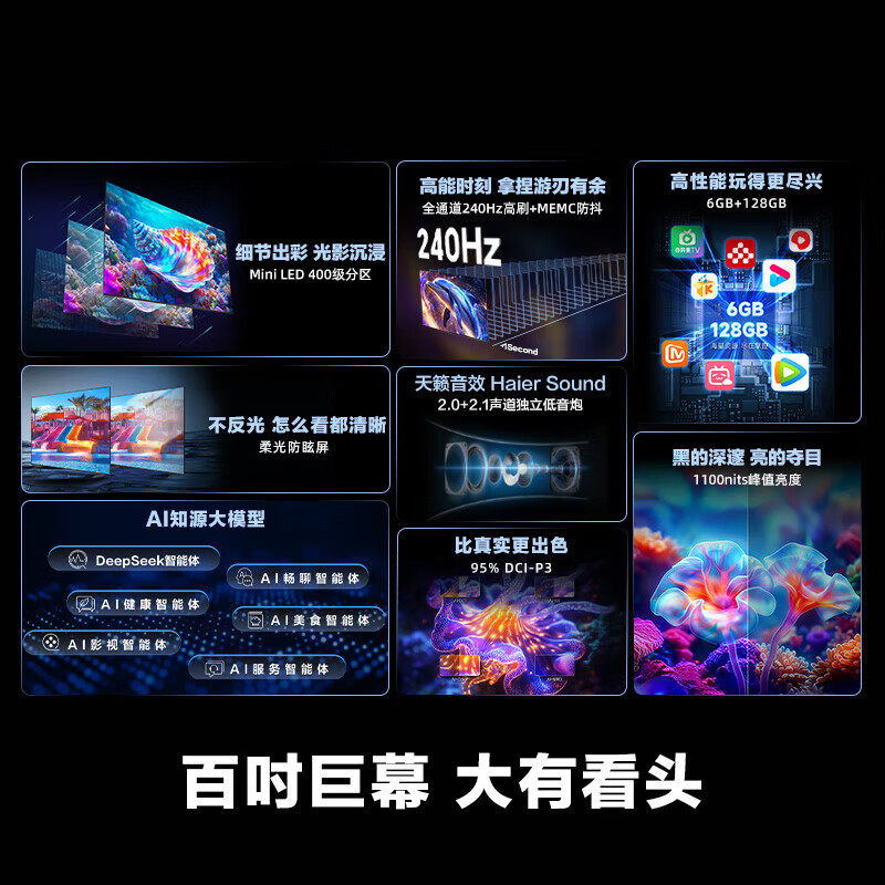 国家补贴海尔100英寸H6C 液晶电视机 别墅大屏Miniled高刷128G新款