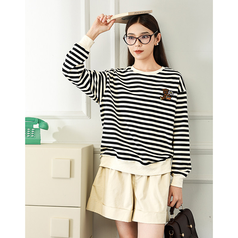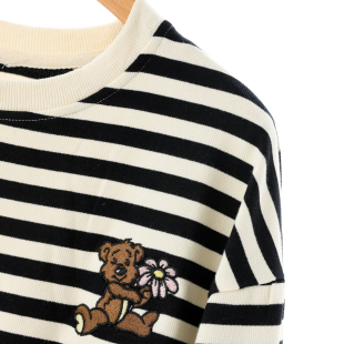 刺绣小熊宽松休闲条纹棉卫衣022 春装 339西湖阁老 兰