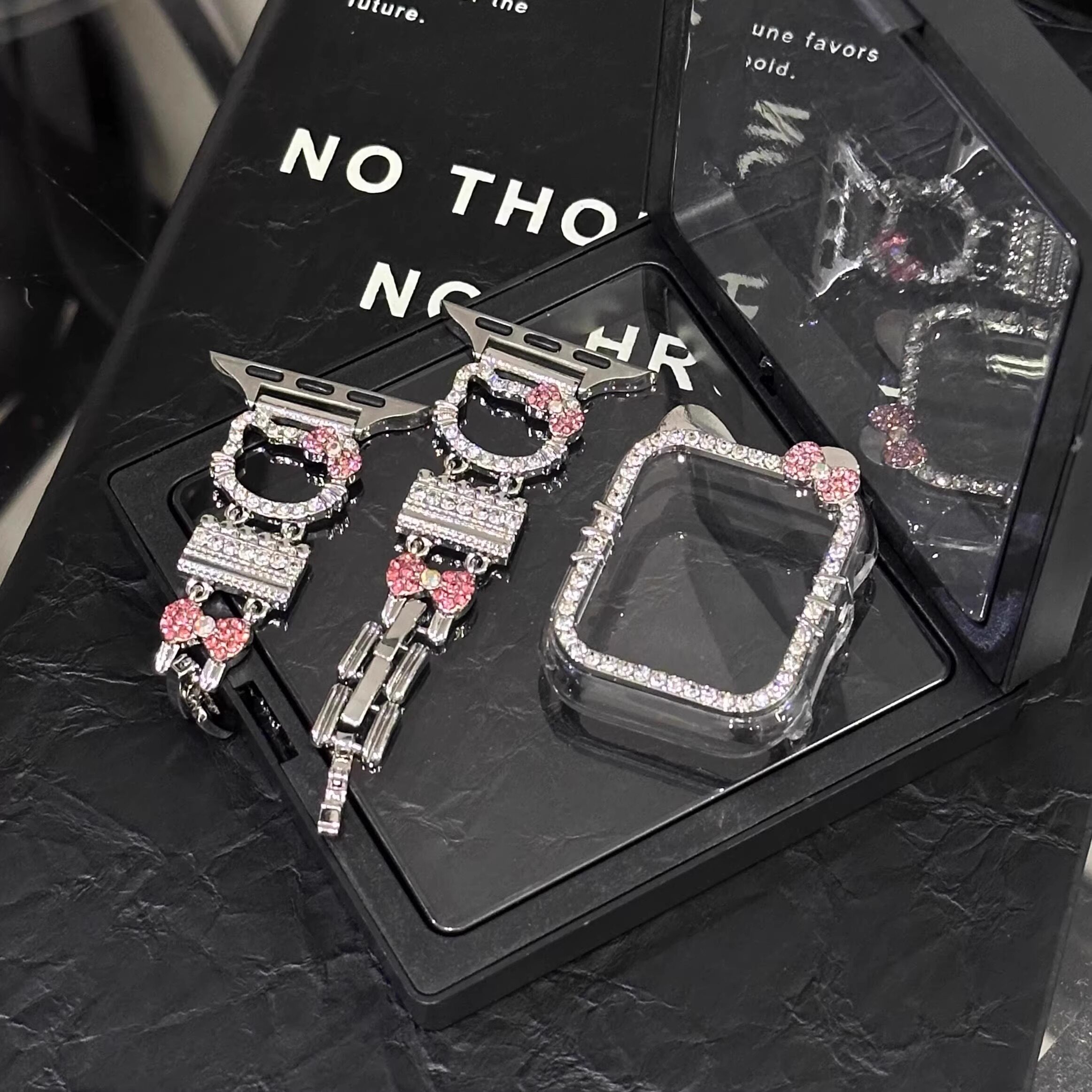 新款 可爱小猫金属手链适用华为FIT4手表表带iwatchs11苹果表带