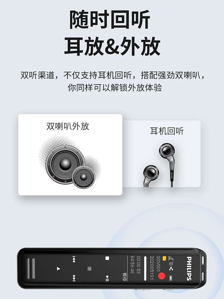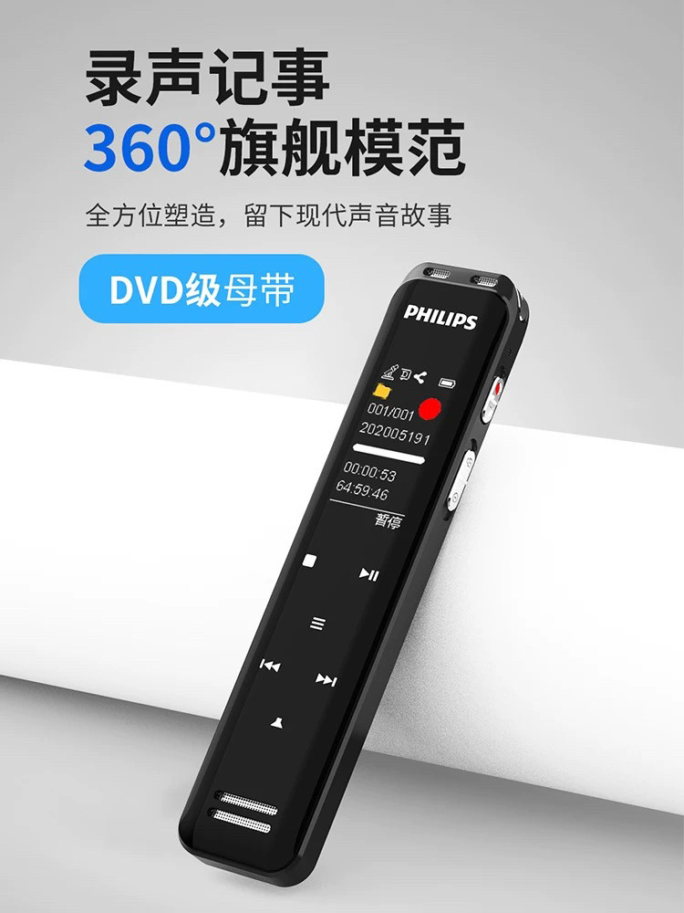 飞利浦录音笔VTR5103Pro专业智能高清降噪随身学生上课录音转文字