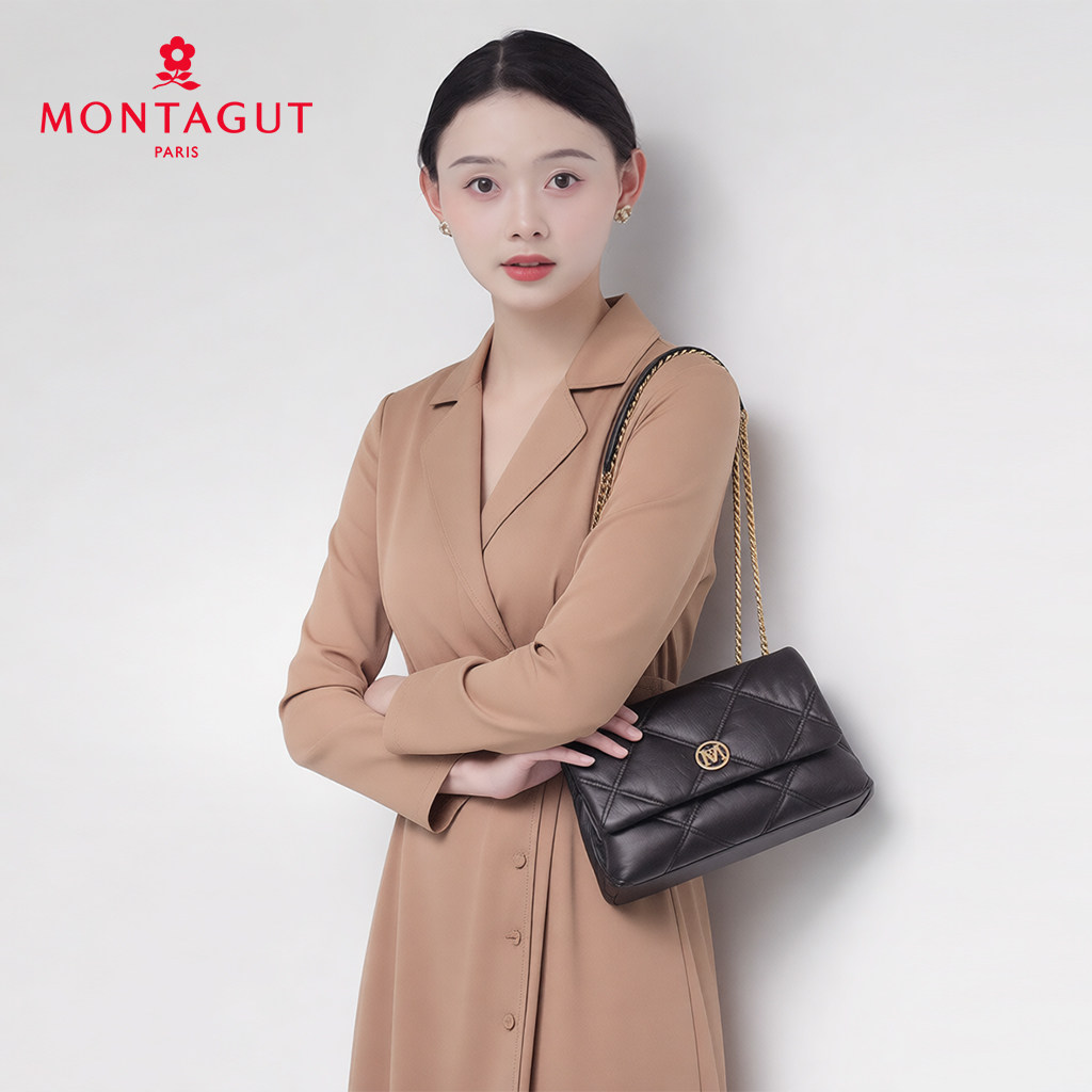斜挎包腋下包 菱格链条单肩包牛皮百搭秋季 梦特娇女包2025新款 时尚