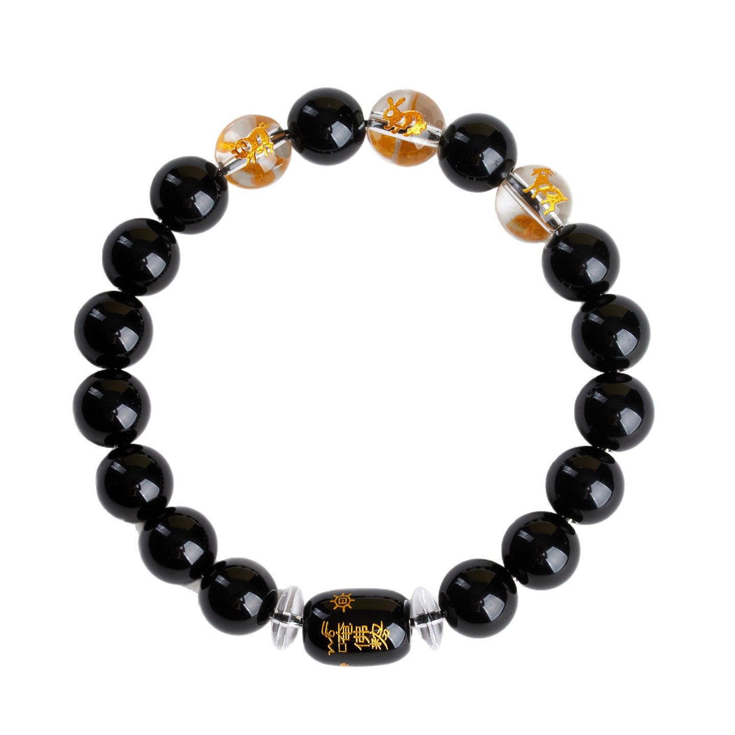 天然黑曜石十二生肖三合贵人手链本命年男女士情侣款 手串