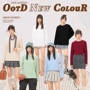 T恤内搭打底衫 回力加绒卫衣男士 加厚宽松白色长袖 2025新款 秋冬季